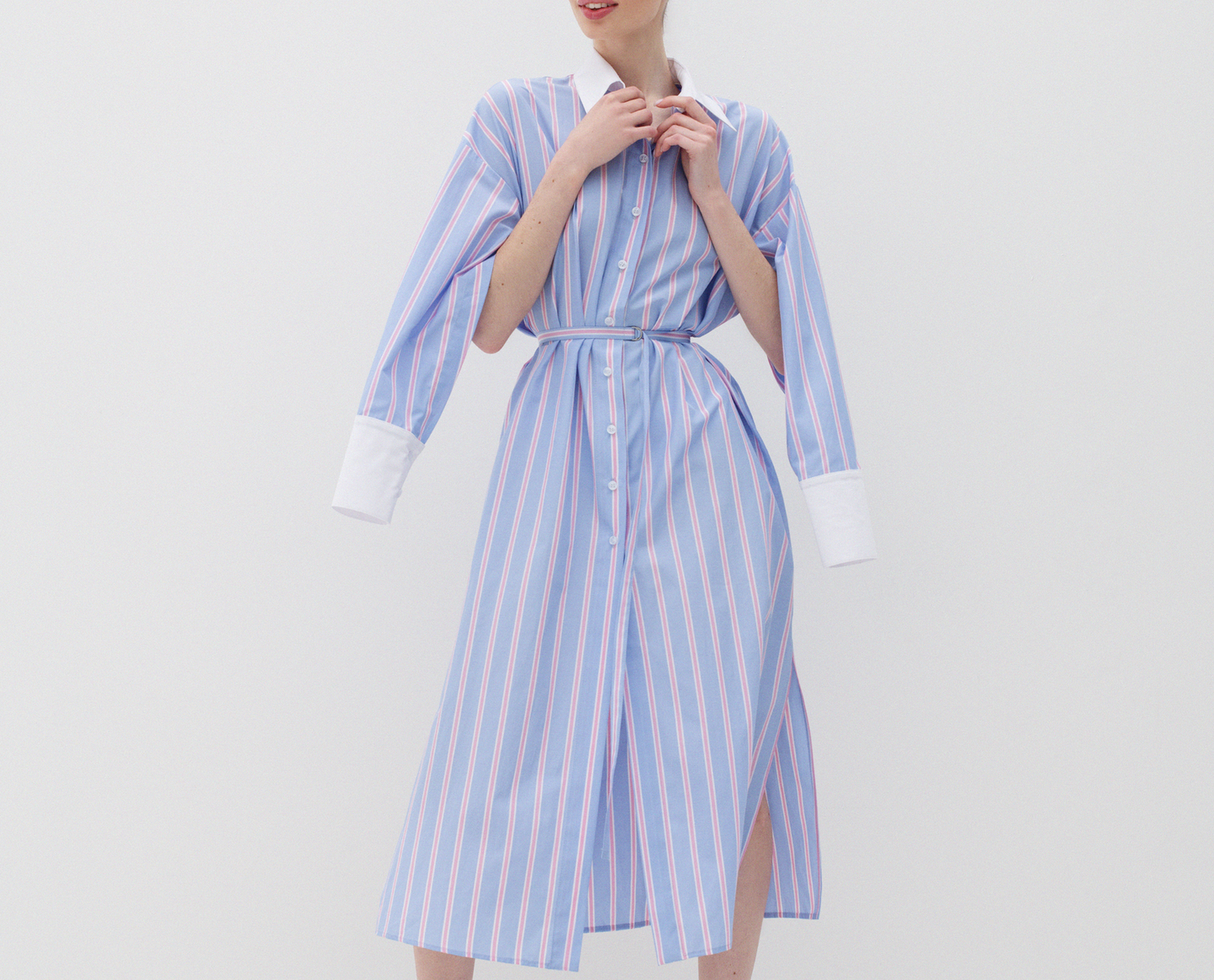 Для летней капсулы «Розовое небо» вдохновением послужило чистое уральское небо, которое летом окрашивается в пастельную палитру от ясного дневного голубого до розового оттенка заката. Капсула состоит из легких хлопковых сарафанов длины на любой вкус - от мини до макси, актуального платья-рубашки, переосмысленной футболки-тельняшки, стеганой куртки для прохладных вечеров, бестселлера бренда - вязаной туники в сетку, а также других моделей в нежных оттенках пастели и лазури.