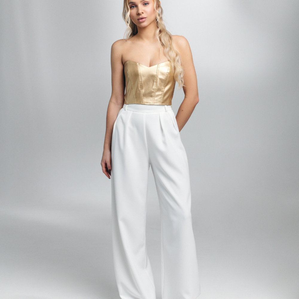 2. Белые брюки и золотой топ