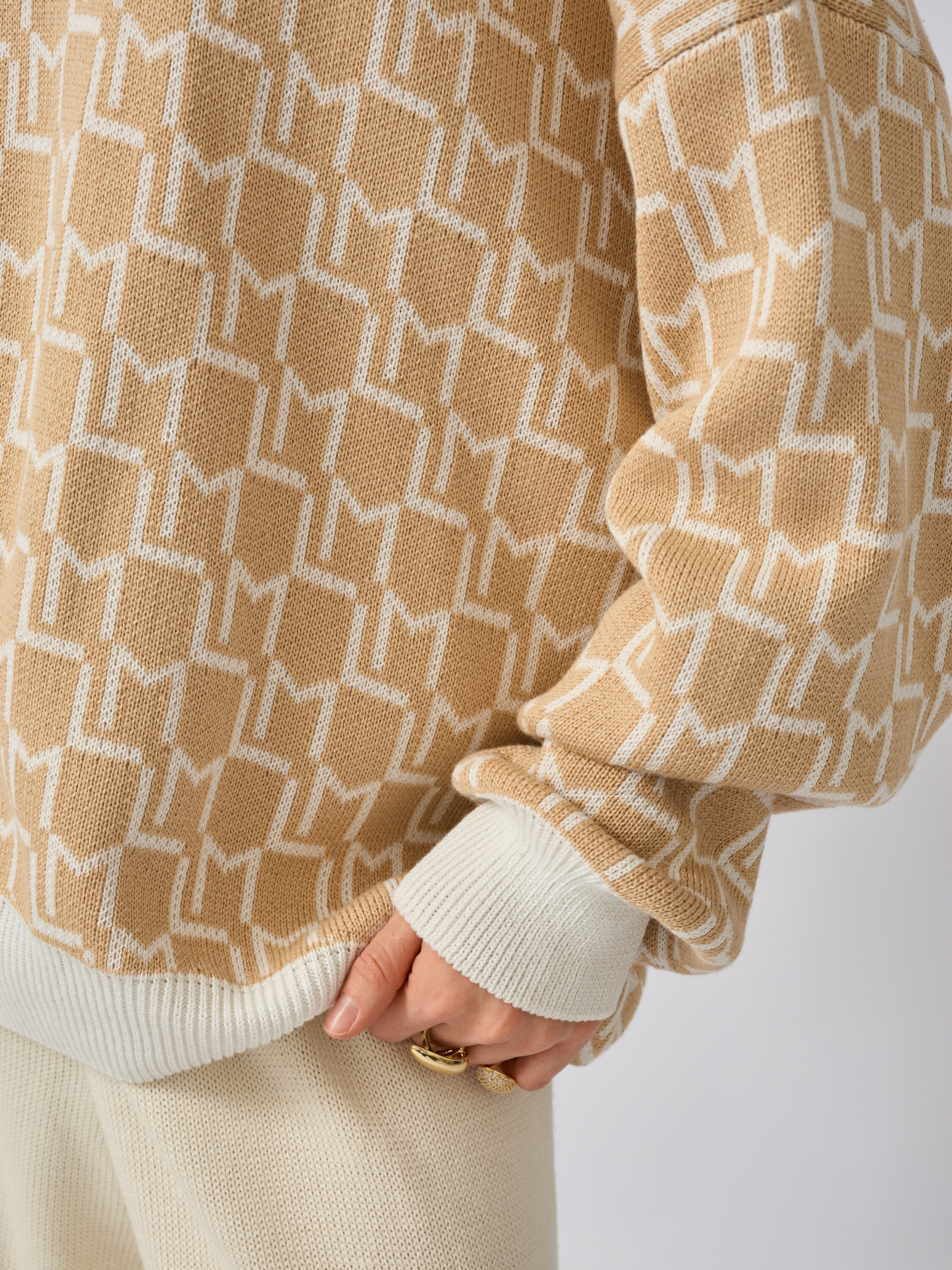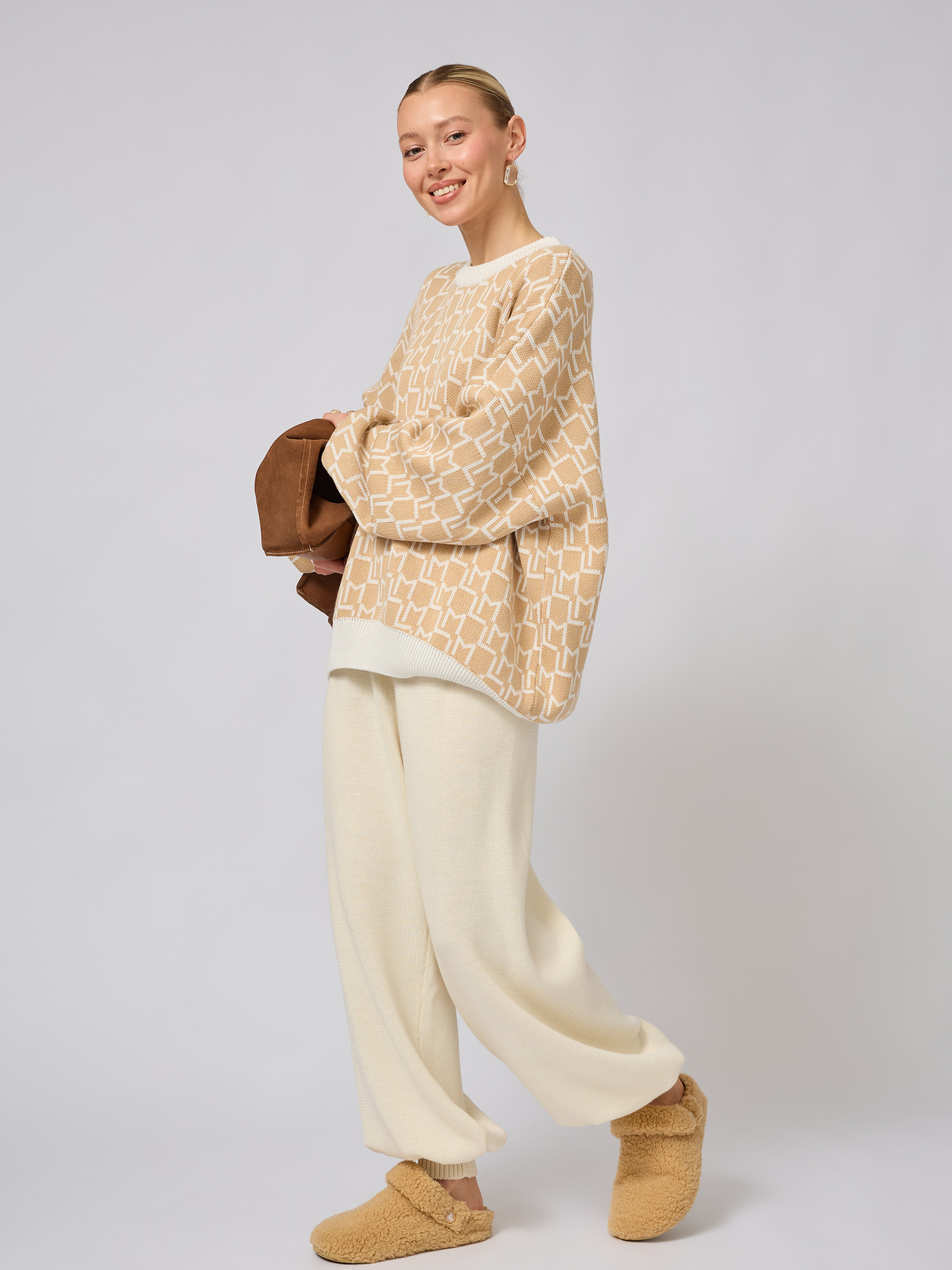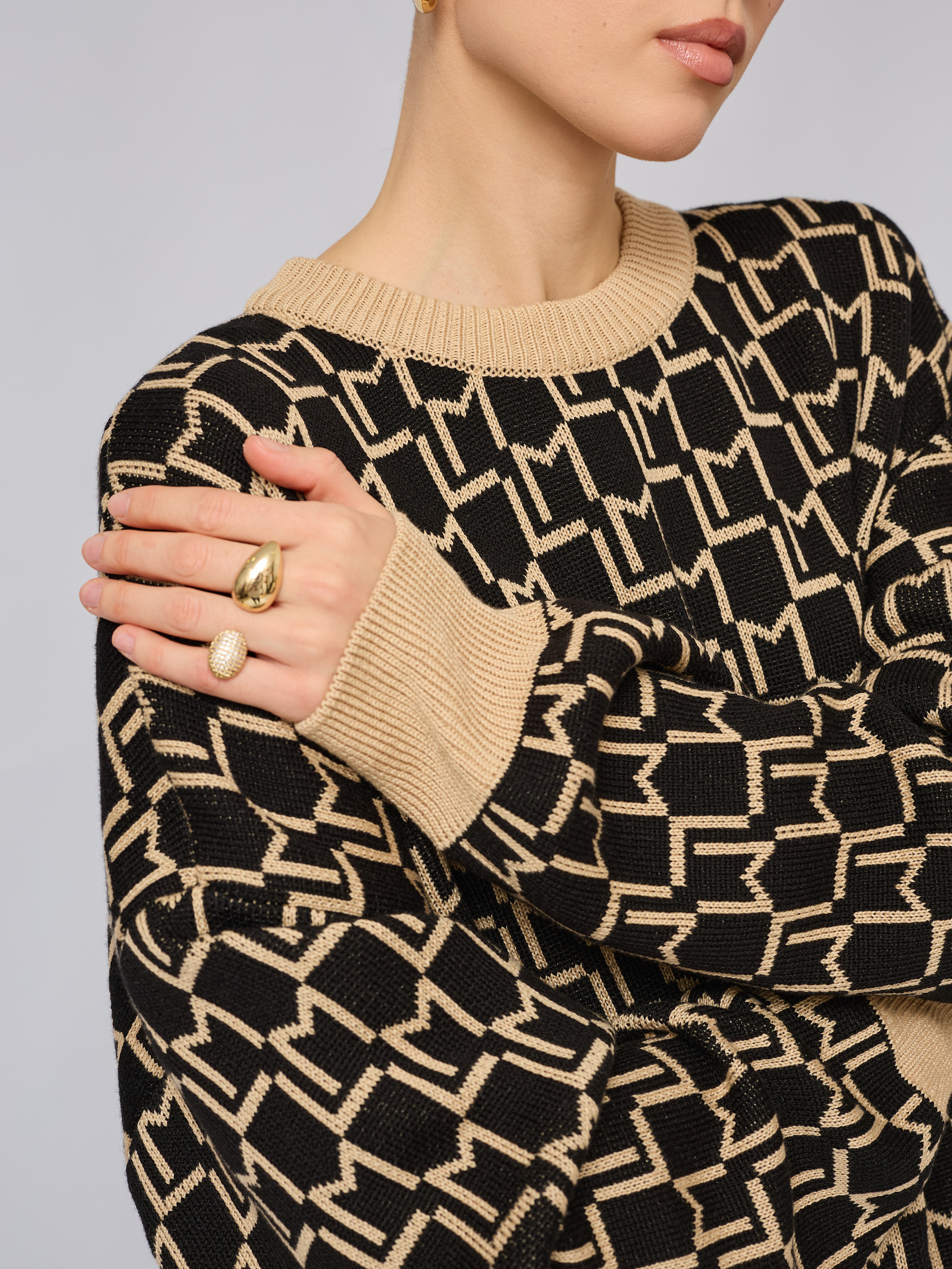 Этот женский джемпер выполнен из мягкой хлопковой и акриловой пряжи, что обеспечивает теплоту и комфорт в демисезонный период. Дизайнерский двухцветный узор с аккуратным логотипом придает изделию модный вид и подчеркивает стильные декоративные элементы. Свободного кроя с длинным рукавом и удлиненным низом, он отлично держит форму благодаря вязанию с переплетением высокой плотности. Уютный свитер без горла обладает формоустойчивой структурой, которая сохраняет аккуратный внешний силуэт даже после многочисленных циклов стирки. Мягкая основа изделия образует гладкий на ощупь материал, который не образует катышков и гипоаллергенен. Манжеты на рукавах и внизу создают эффект аккуратного завершения, а длинный свободный рукав добавляет удобства и практичности. Такой теплый свитер легко сочетать с разными моделями юбок, брюк, становясь незаменимой частью гардероба тех, кто ищет стильную вещь для создания нарядного образа в сочетании с модными тенденциями. Базовый синий цвет гармонично дополняется молочными элементами, что придает изделию легкую дизайнерскую изюминку. Благодаря составу из хлопка и акрила вещь отличается износоустойчивостью и легкостью ухода. Такой джемпер подходит для активной жизни — он сохраняет форму и внешний вид даже после длительного ношения. Свободного кроя модель создает эффект объемного oversize силуэта, подчеркивая индивидуальность каждой женщины. Длинный рукав позволяет чувствовать себя уютно в прохладное время года, а отсутствие горла делает дизайн более современным и универсальным. Вязаная структура изделия формирует приятную текстуру за счет использования мягкой пряжи высокого качества. Этот женский джемпер станет отличным выбором для тех, кто ценит удобство в сочетании с нарядностью и модным внешним видом. Он идеально подходит для повседневной носки или особых случаев благодаря тщательно продуманному дизайну и качественному составу материалов.