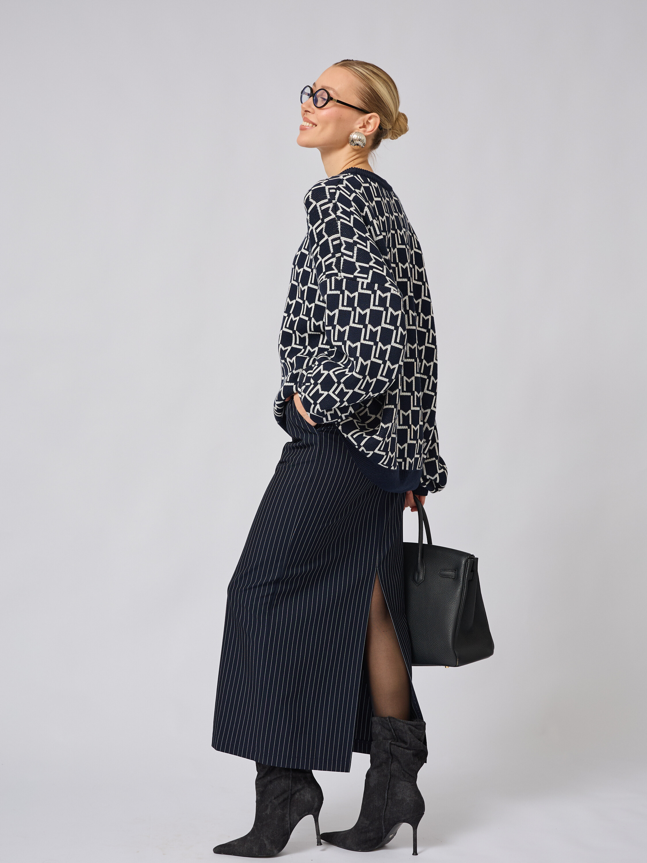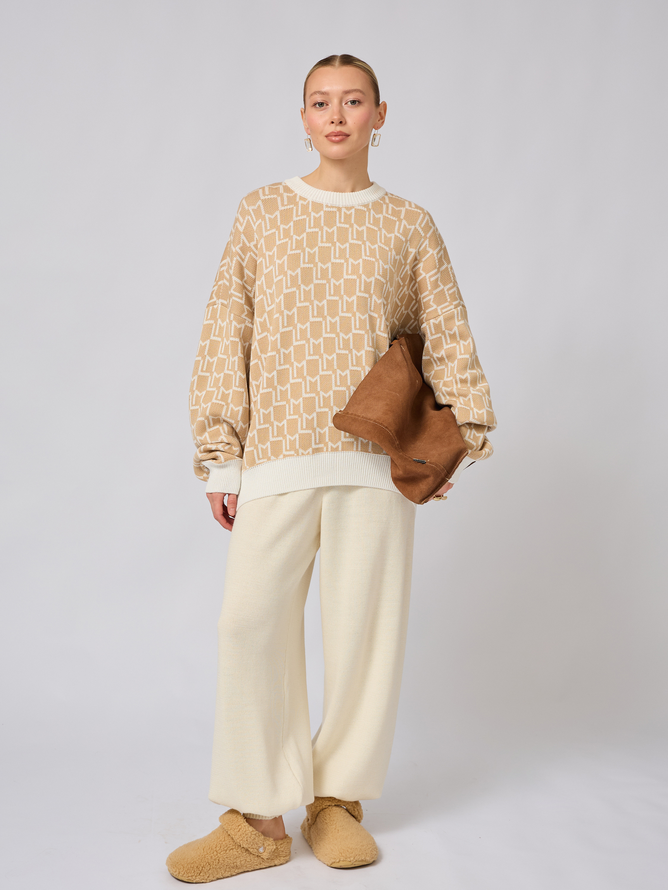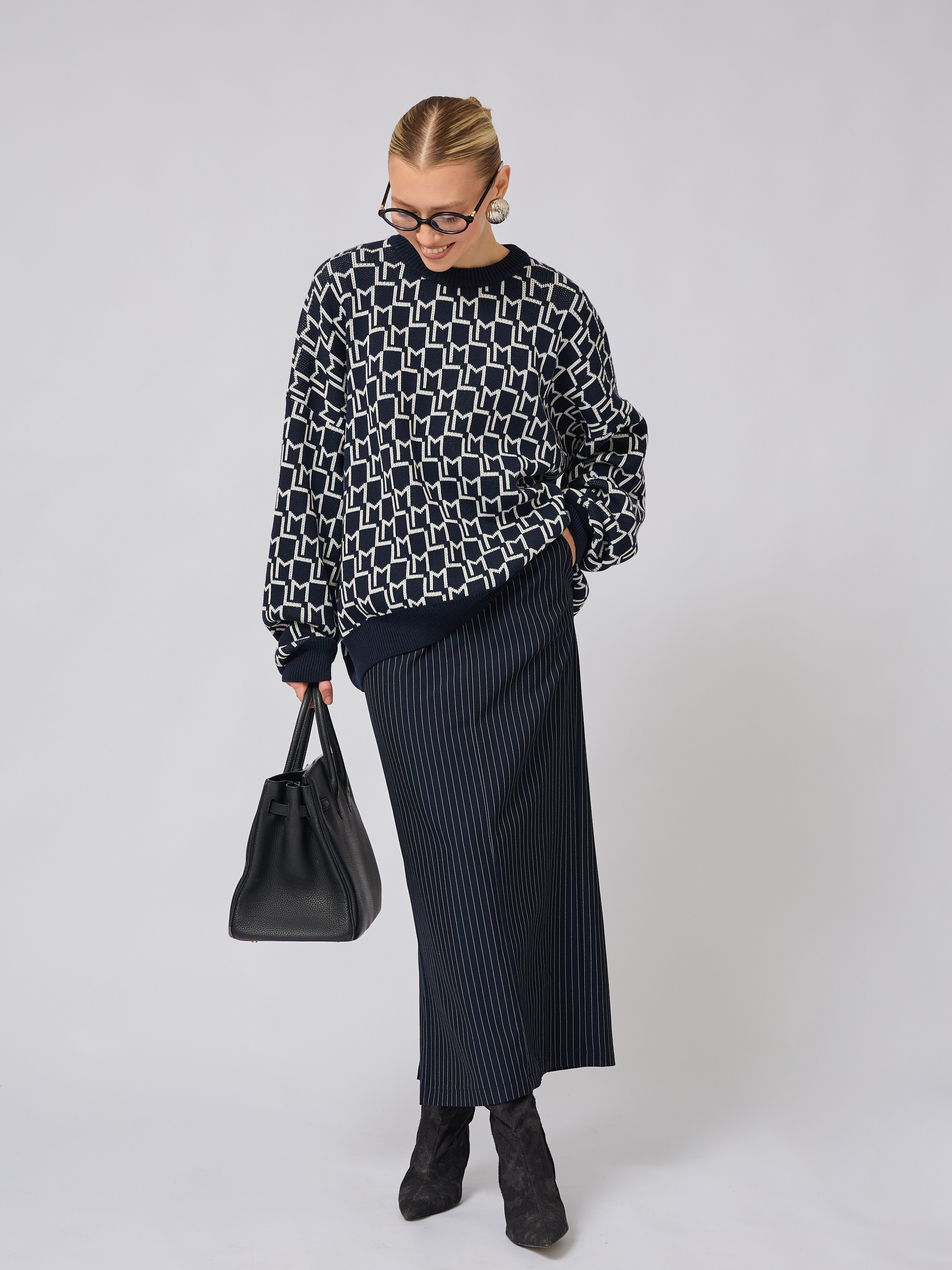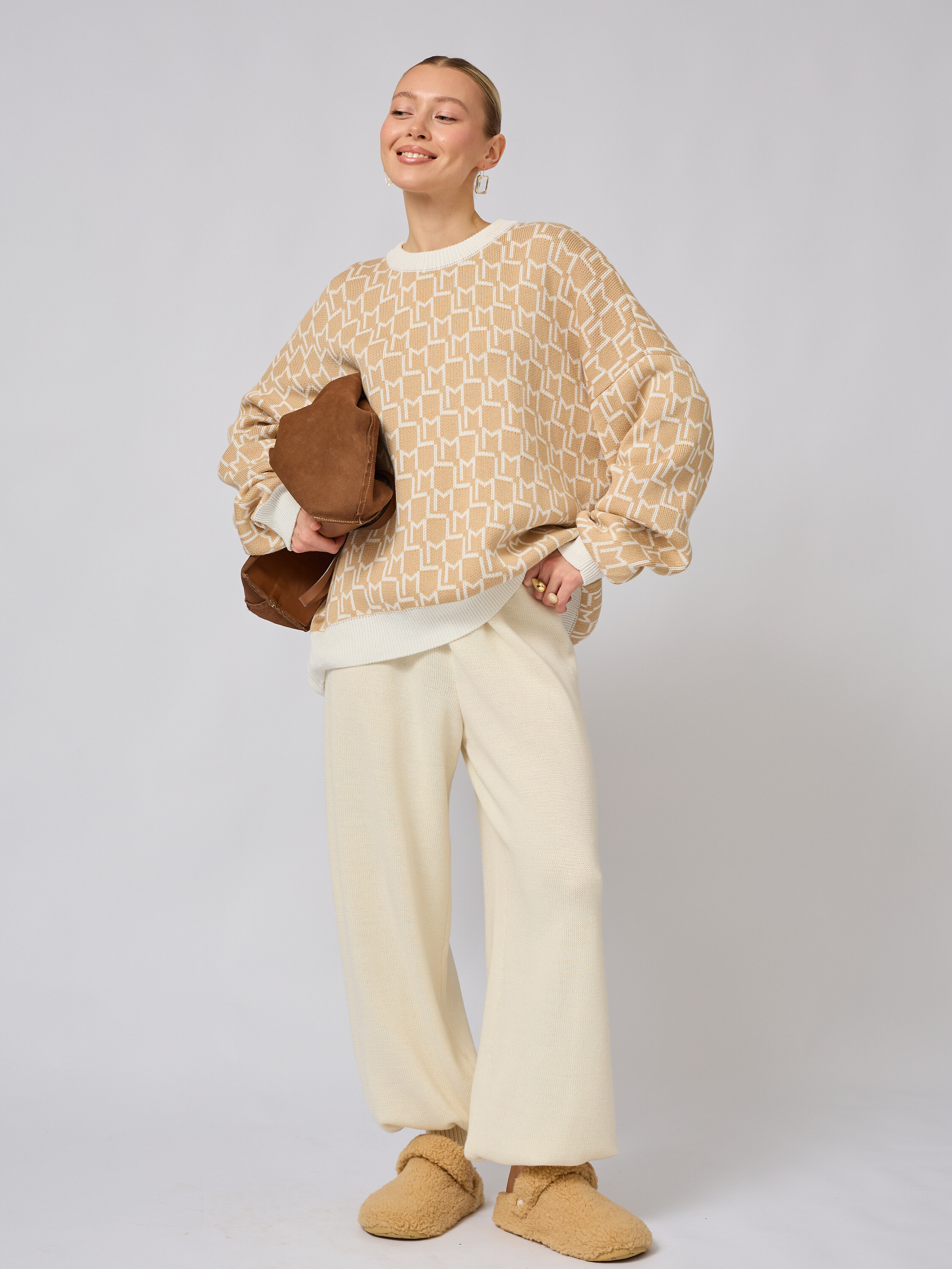 Этот женский джемпер выполнен из мягкой хлопковой и акриловой пряжи, что обеспечивает теплоту и комфорт в демисезонный период. Дизайнерский двухцветный узор с аккуратным логотипом придает изделию модный вид и подчеркивает стильные декоративные элементы. Свободного кроя с длинным рукавом и удлиненным низом, он отлично держит форму благодаря вязанию с переплетением высокой плотности. Уютный свитер без горла обладает формоустойчивой структурой, которая сохраняет аккуратный внешний силуэт даже после многочисленных циклов стирки. Мягкая основа изделия образует гладкий на ощупь материал, который не образует катышков и гипоаллергенен. Манжеты на рукавах и внизу создают эффект аккуратного завершения, а длинный свободный рукав добавляет удобства и практичности. Такой теплый свитер легко сочетать с разными моделями юбок, брюк, становясь незаменимой частью гардероба тех, кто ищет стильную вещь для создания нарядного образа в сочетании с модными тенденциями. Базовый синий цвет гармонично дополняется молочными элементами, что придает изделию легкую дизайнерскую изюминку. Благодаря составу из хлопка и акрила вещь отличается износоустойчивостью и легкостью ухода. Такой джемпер подходит для активной жизни — он сохраняет форму и внешний вид даже после длительного ношения. Свободного кроя модель создает эффект объемного oversize силуэта, подчеркивая индивидуальность каждой женщины. Длинный рукав позволяет чувствовать себя уютно в прохладное время года, а отсутствие горла делает дизайн более современным и универсальным. Вязаная структура изделия формирует приятную текстуру за счет использования мягкой пряжи высокого качества. Этот женский джемпер станет отличным выбором для тех, кто ценит удобство в сочетании с нарядностью и модным внешним видом. Он идеально подходит для повседневной носки или особых случаев благодаря тщательно продуманному дизайну и качественному составу материалов.