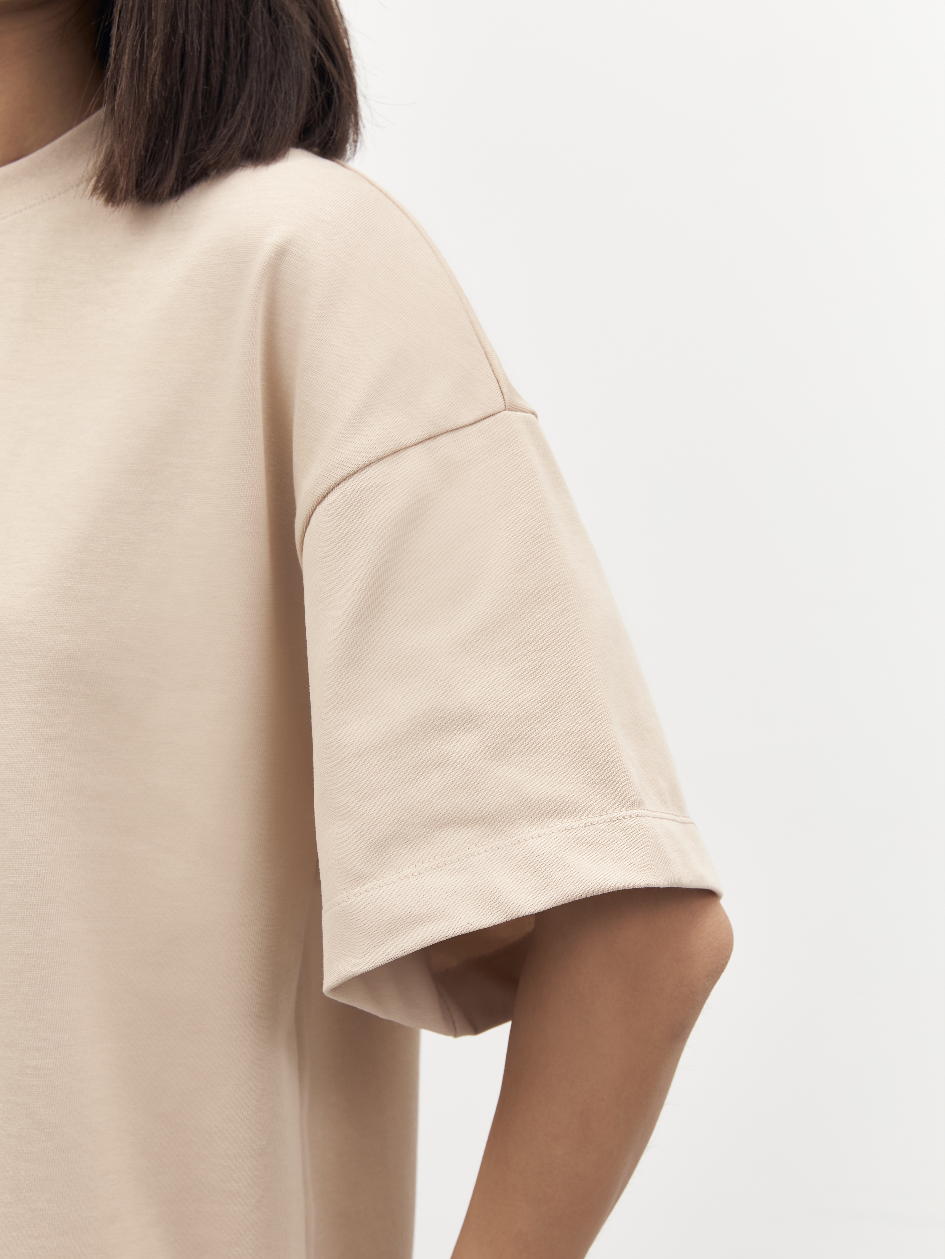 Если вы ищете футболку oversize, эта модель станет удачным вариантом благодаря своему современному дизайну. Стильная одежда всегда остается в моде, а плотная трикотажная ткань гарантирует долговечность даже после многочисленных стирок.