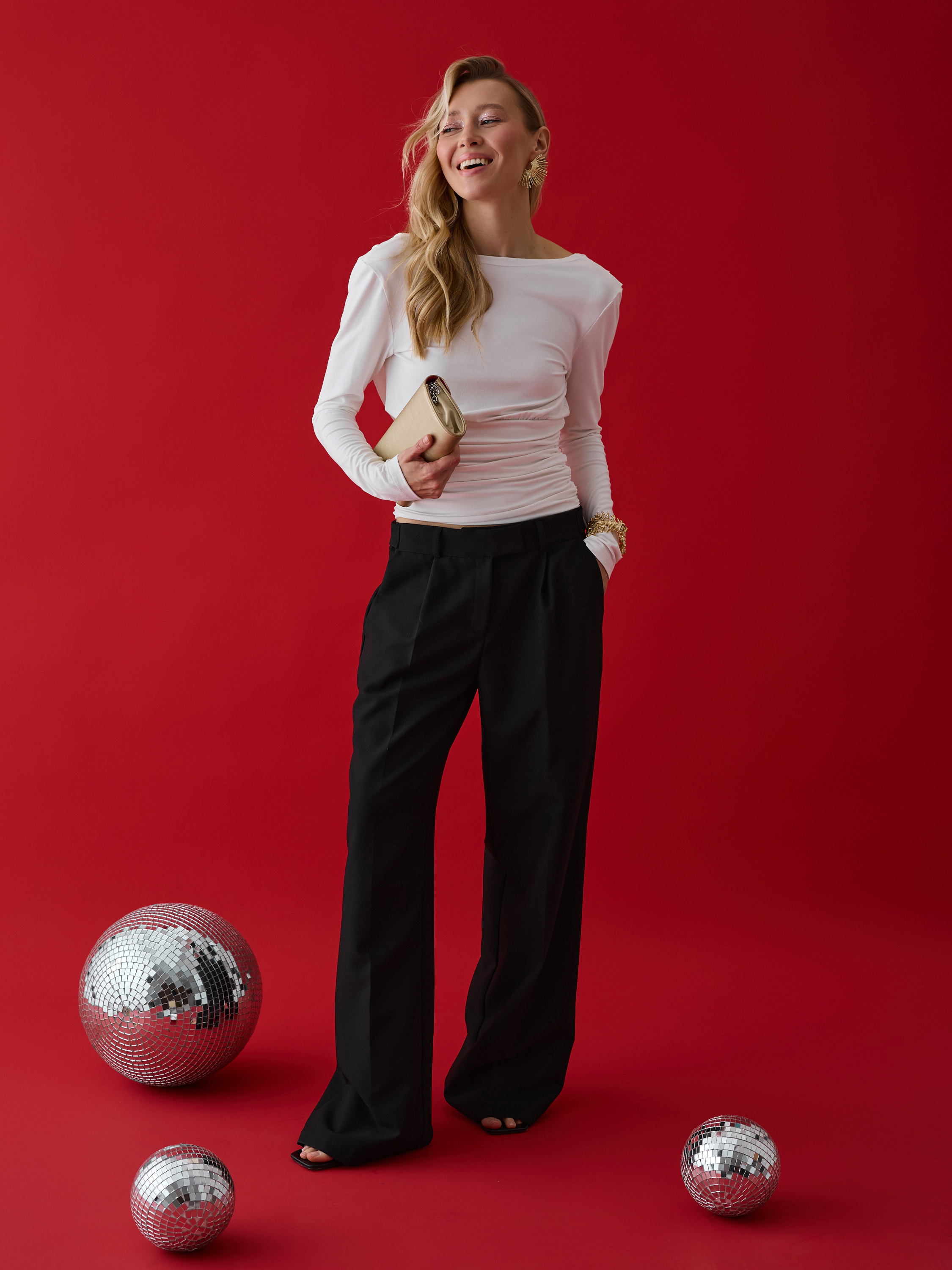 Облегающий крой и нарядная фактура трикотажа позволяют рассчитывать на идеальный стиль в течение всего дня и ночи, создавая праздничный, эффектный внешний вид с профессионализмом и любовью к деталям. С этим топом из вискозы вы всегда будете выглядеть изящно и ощущать комфорт, подходящий для самых важных случаев и вечеринок.