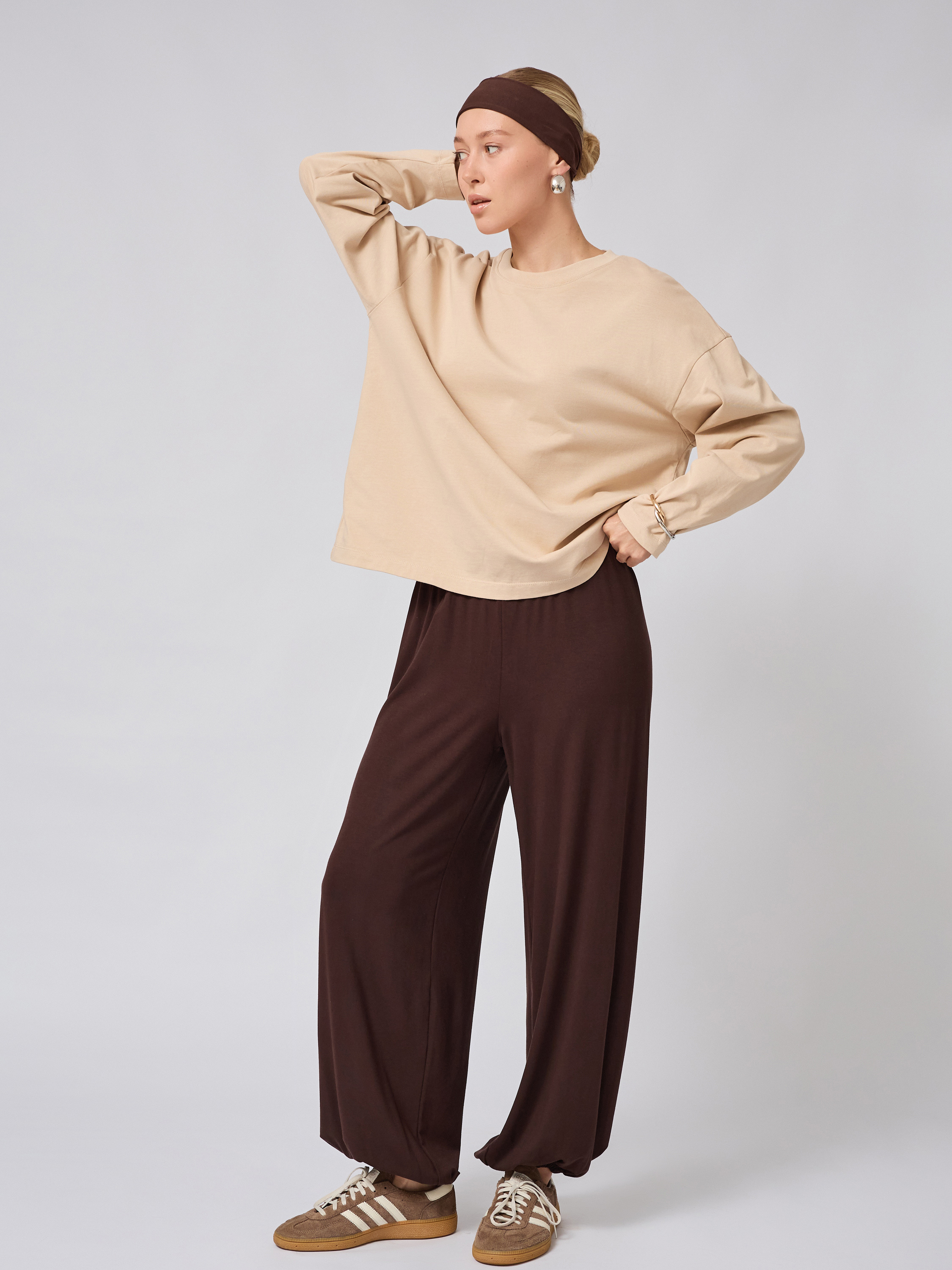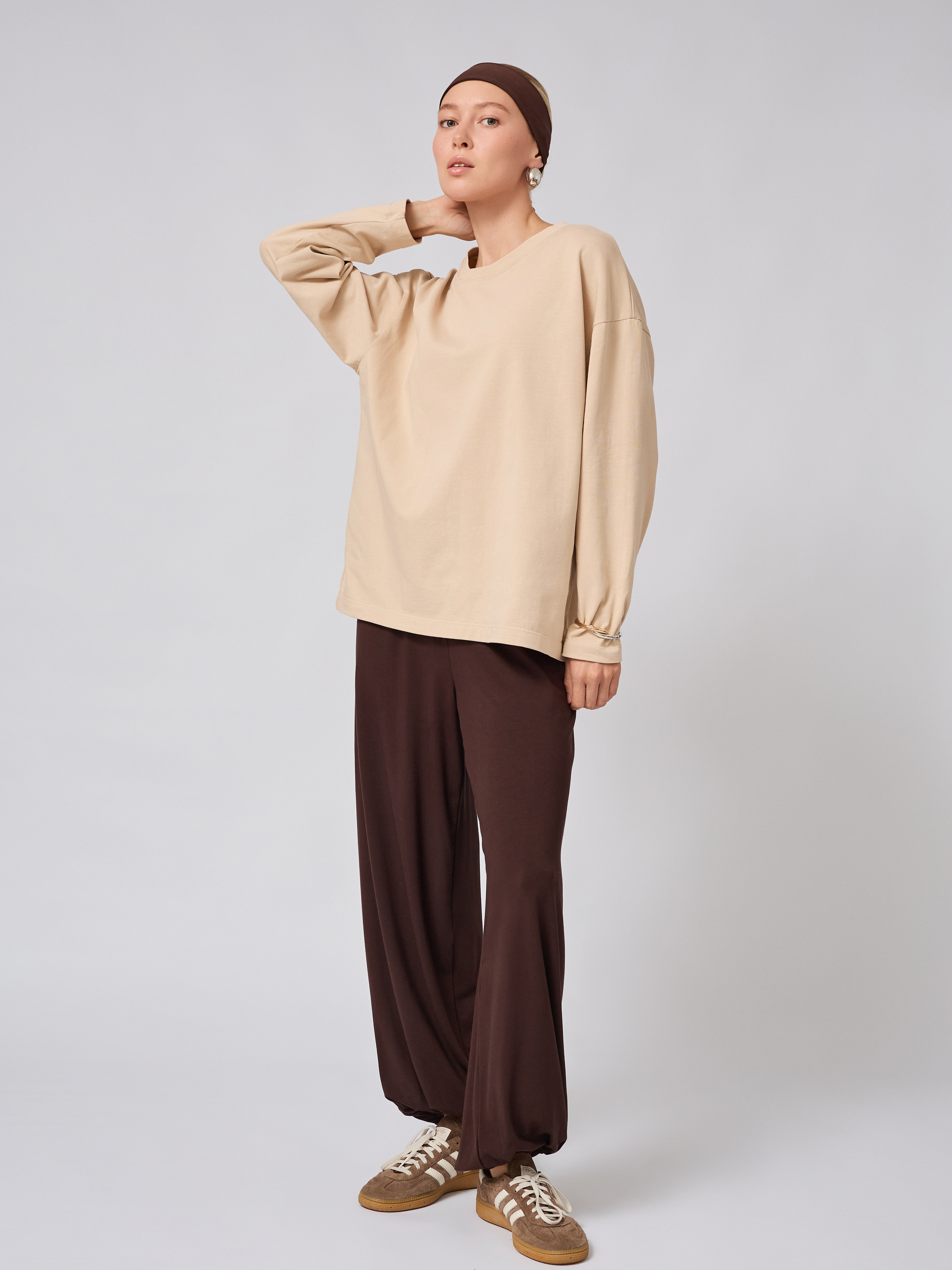 Свободный крой с удлиненными рукавами и округлой горловиной с отделкой из кашкорсе дарит ощущение легкости, не ограничивая движений. Этот расслабленный силуэт отлично подходит для активных дней: будь то дорога на работу, учеба или прогулка. Линия плеч мягкая, а плотная ткань обеспечивает тепло и формоустойчивость даже в прохладный период года.