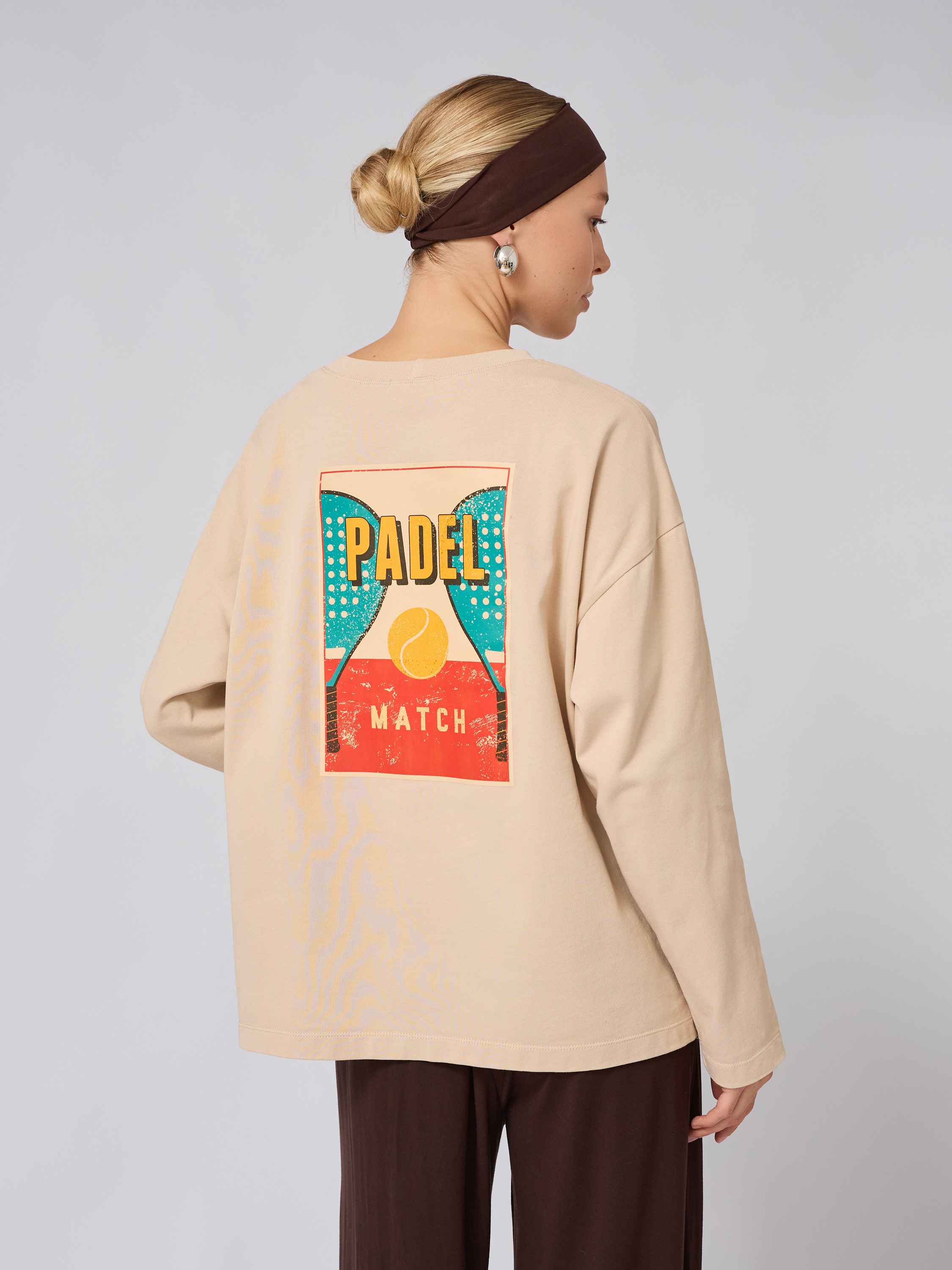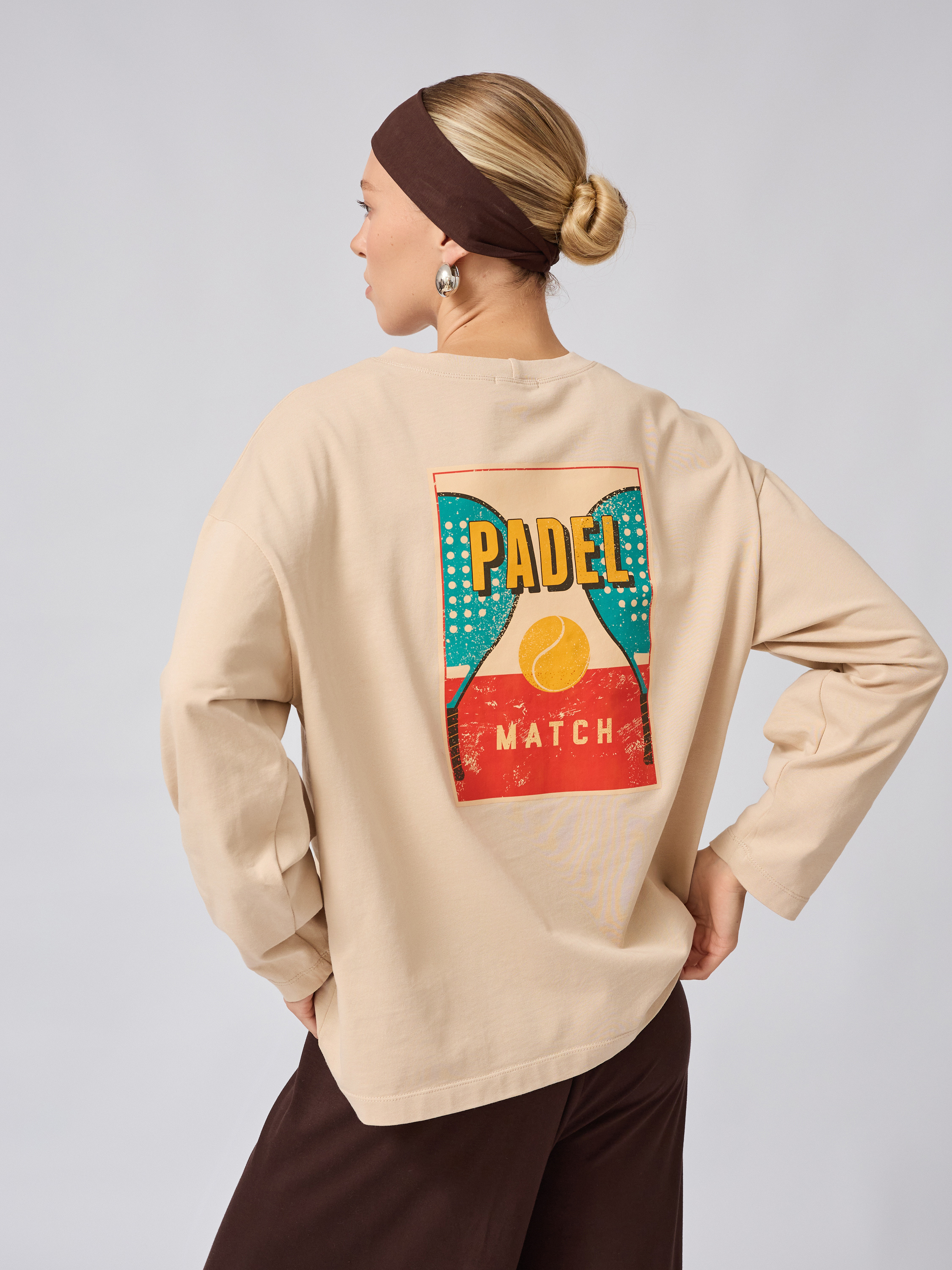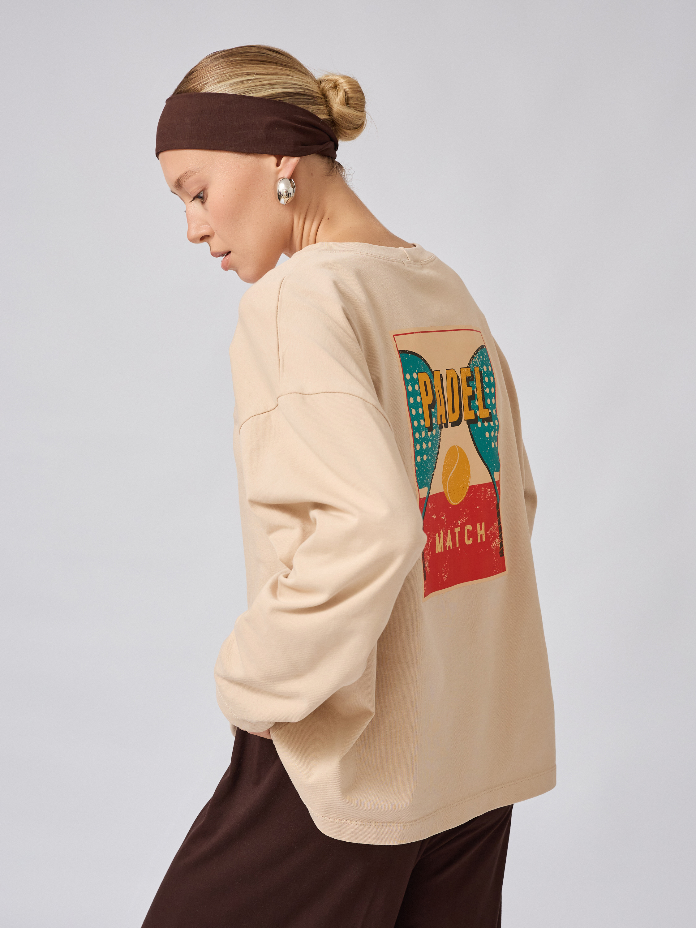 Женский оверсайз лонгслив в бежевом цвете — идеальный выбор для тех, кто ценит комфорт и стиль в повседневной одежде. Мы создали трикотажный лонгслив, который хочется носить не снимая благодаря мягкой текстуре хлопка высокого качества. Модель украшена стильной надписью и принтом «ПАДЕЛ», что добавляет образу выразительности и современности.