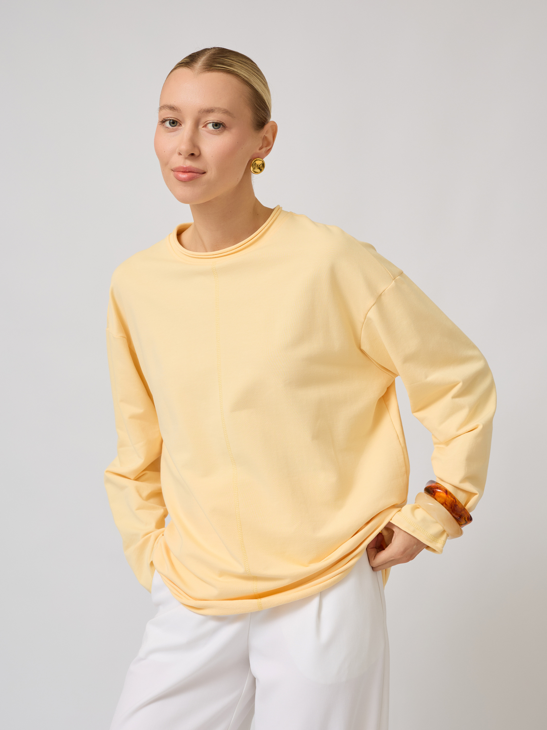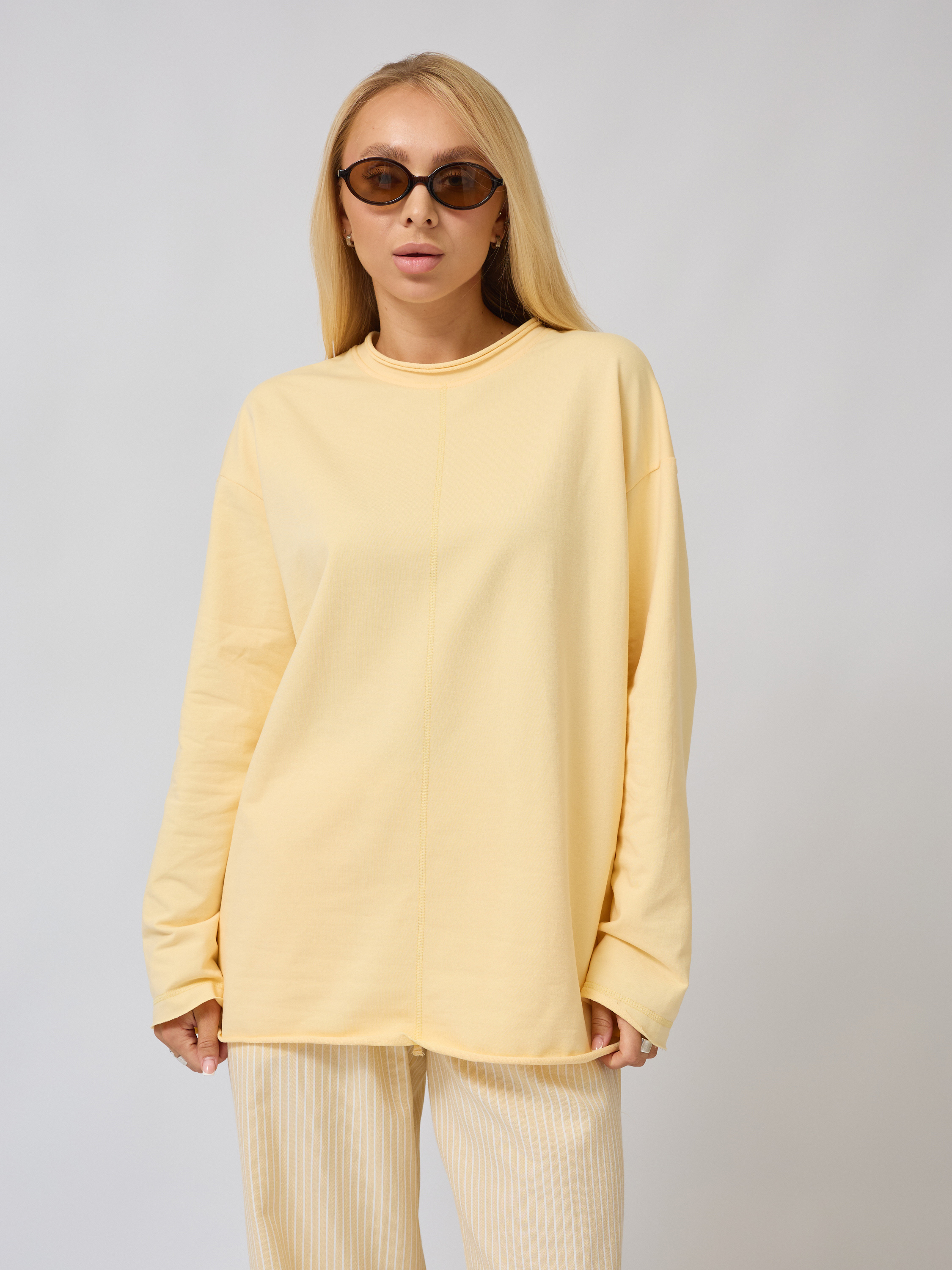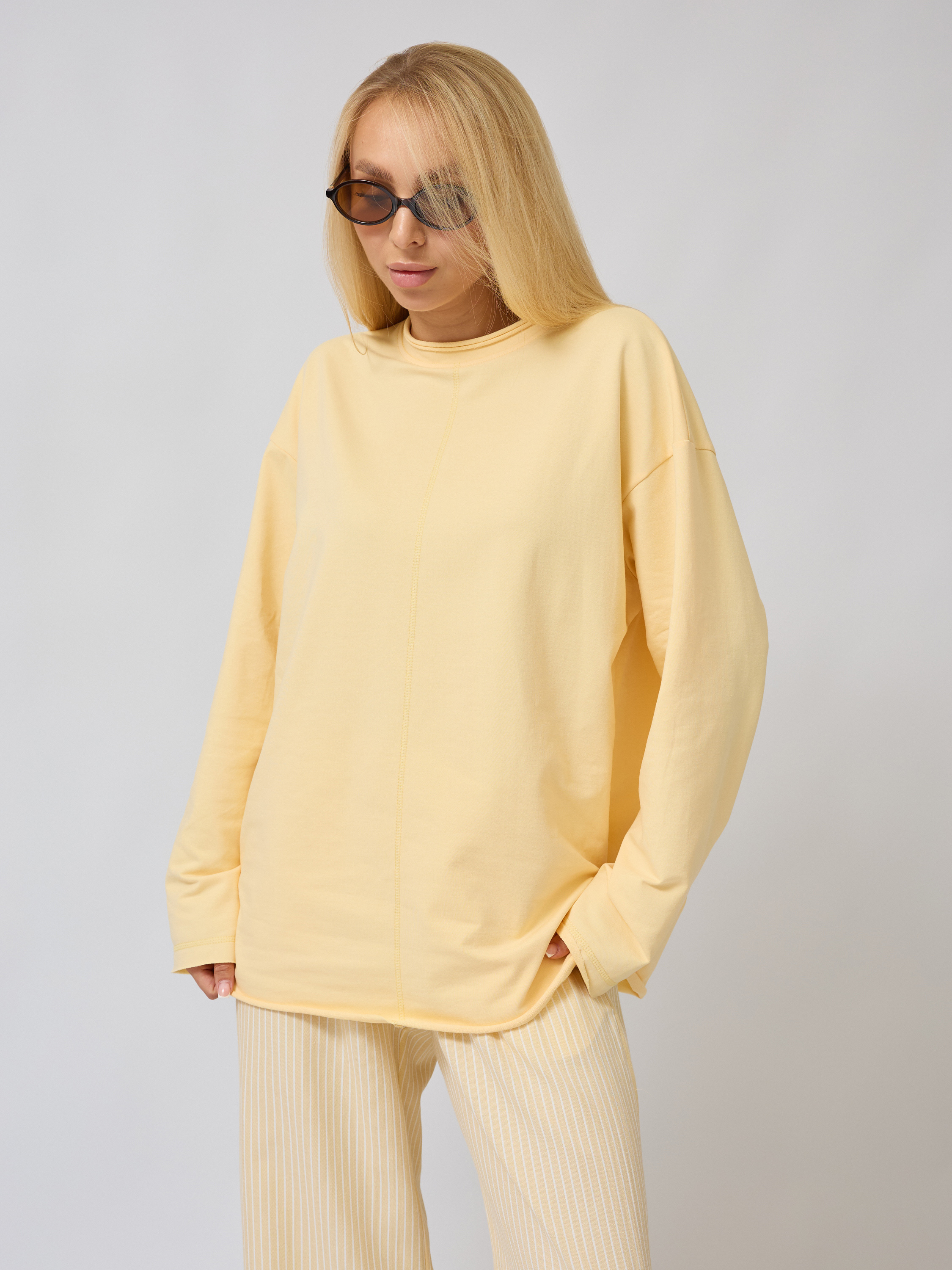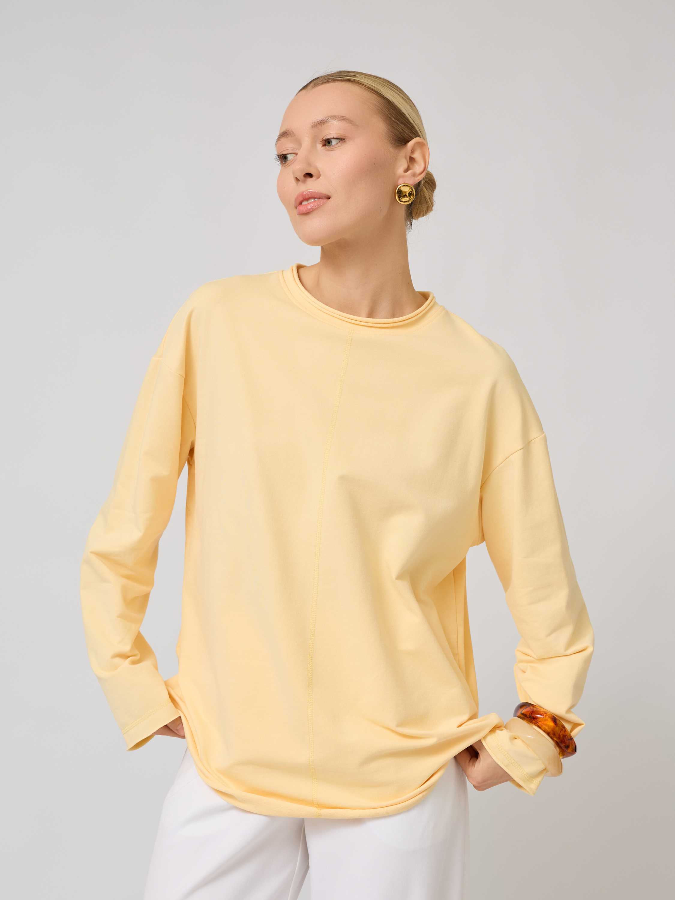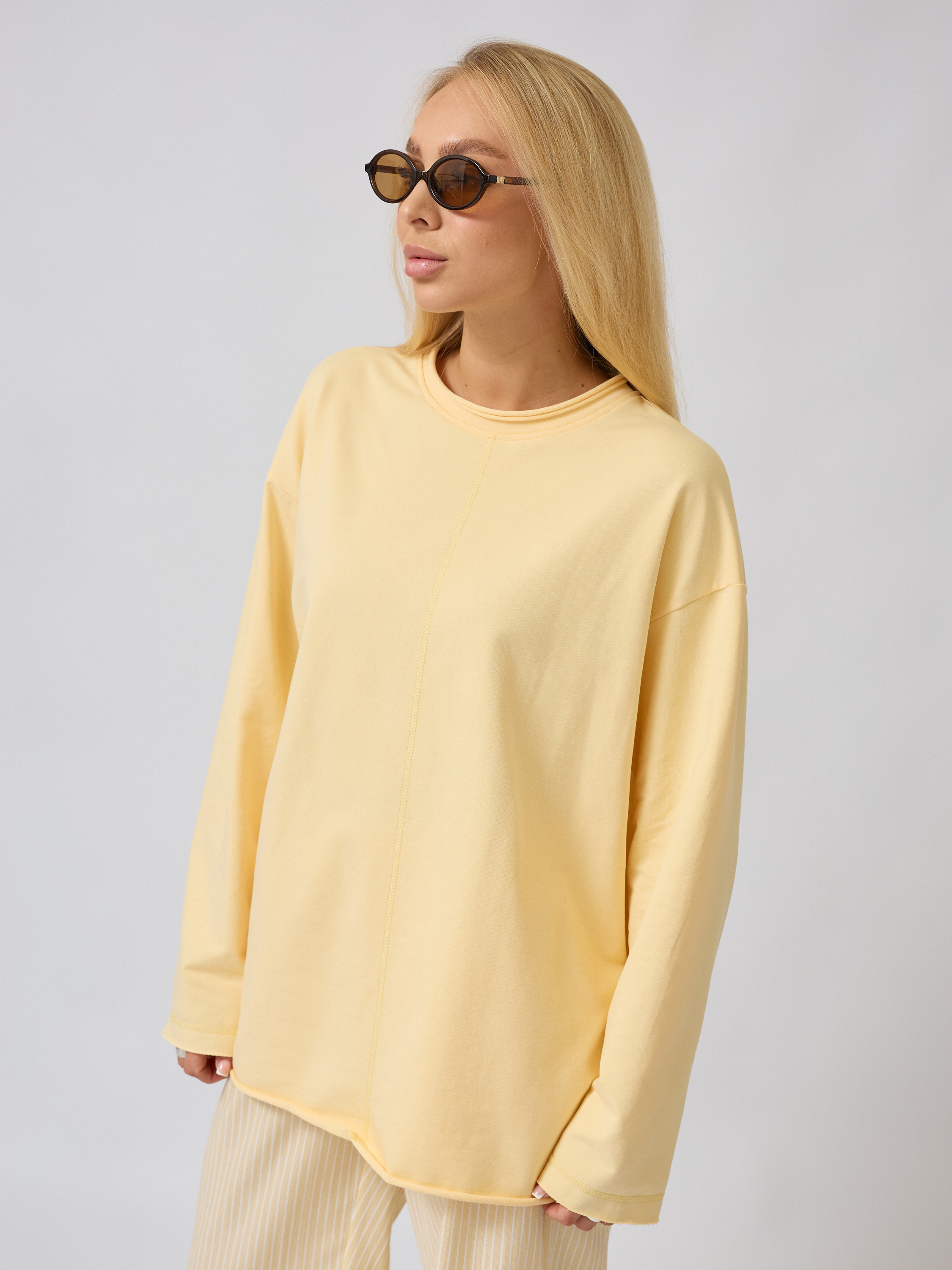 Стильный женский лонгслив в светло-желтом оттенке — идеальный выбор для тех, кто ценит комфорт и современные модные решения. Базовая модель с удлиненной формой и свободным кроем отлично подходит для повседневного ношения или создания стильных образов на вечер. Натуральный мягкий хлопок обеспечивает приятные ощущения на коже, а трикотажное полотно позволяет изделию "дышать", что делает его особенно комфортным даже в жаркие дни.