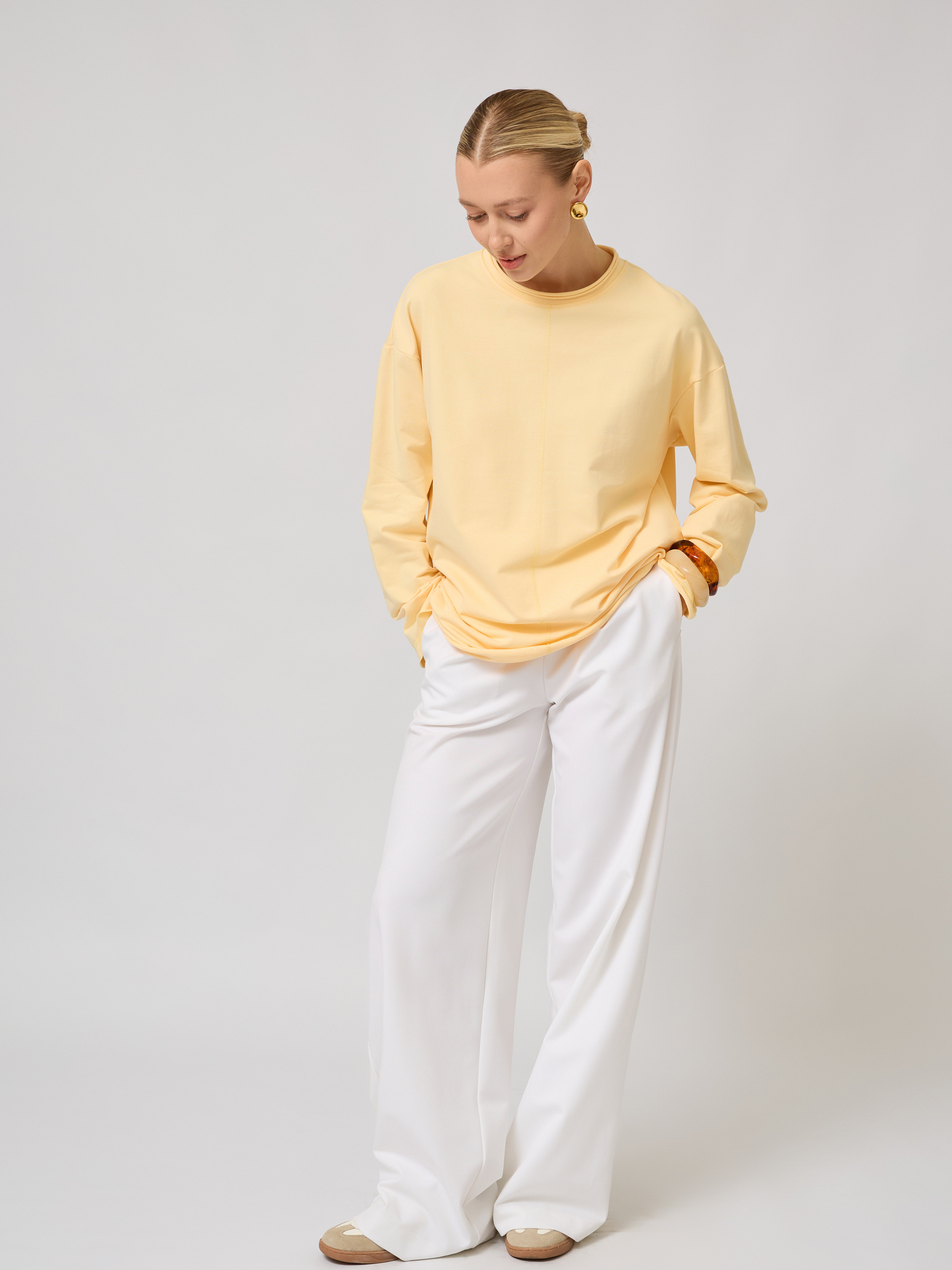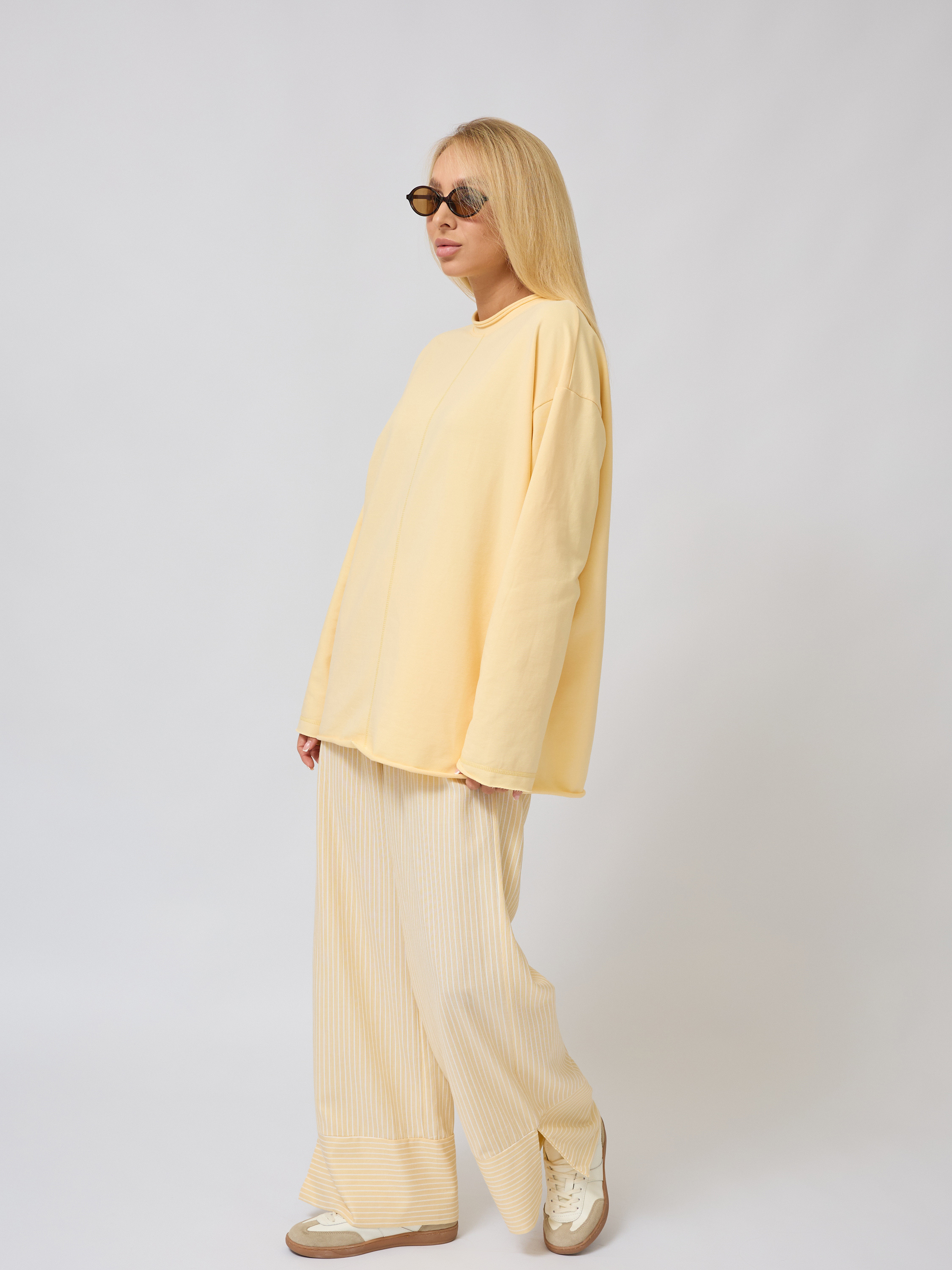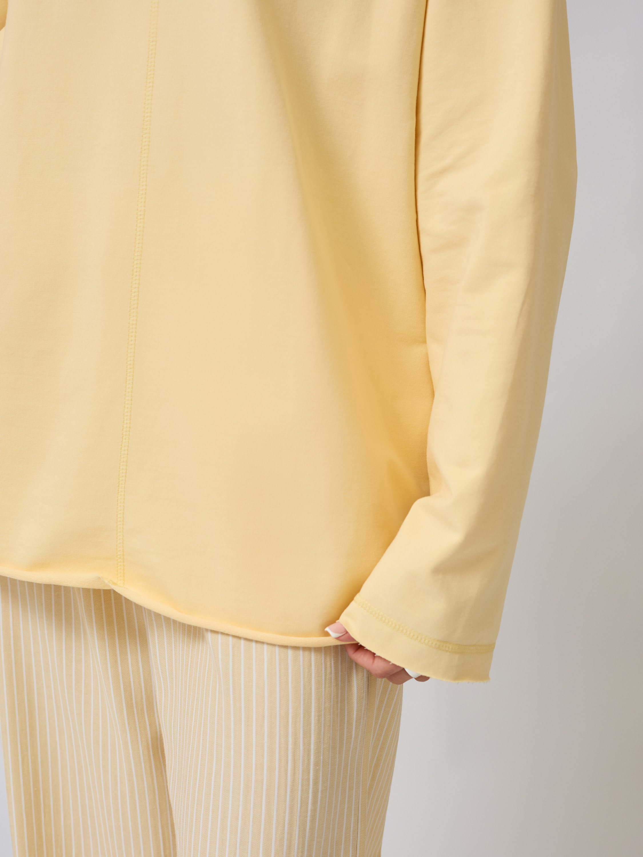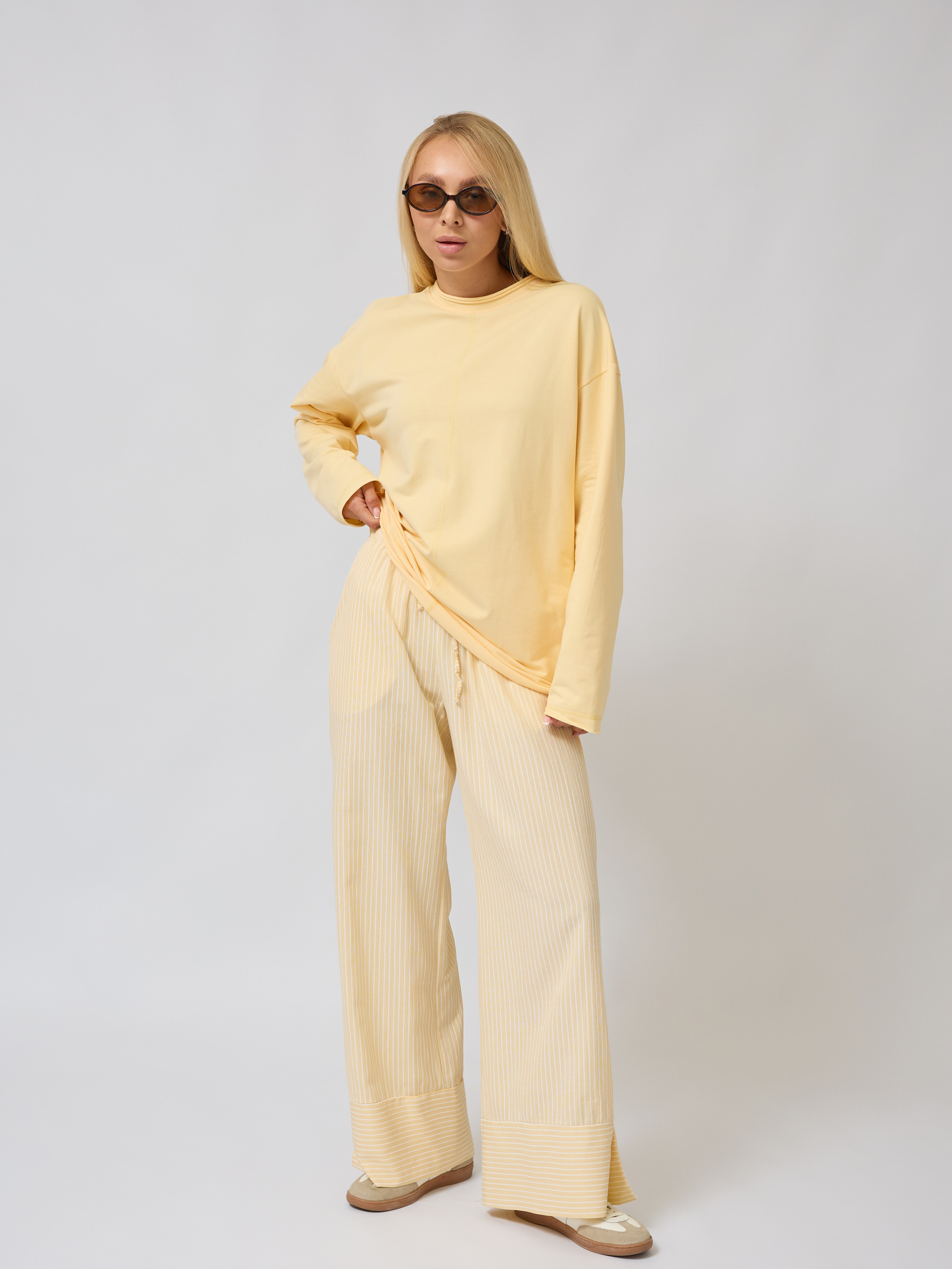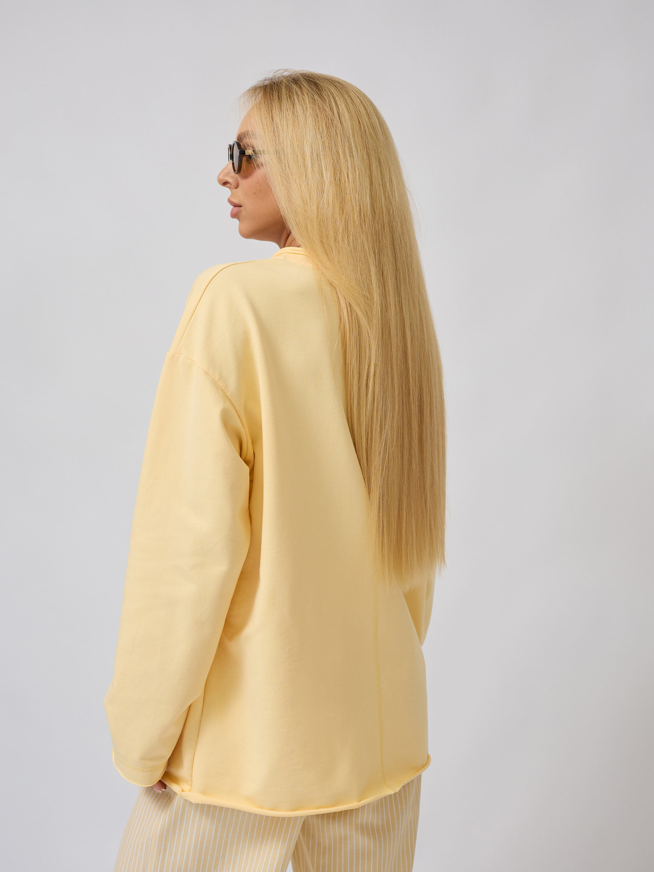 Стильный женский лонгслив в светло-желтом оттенке — идеальный выбор для тех, кто ценит комфорт и современные модные решения. Базовая модель с удлиненной формой и свободным кроем отлично подходит для повседневного ношения или создания стильных образов на вечер. Натуральный мягкий хлопок обеспечивает приятные ощущения на коже, а трикотажное полотно позволяет изделию "дышать", что делает его особенно комфортным даже в жаркие дни.