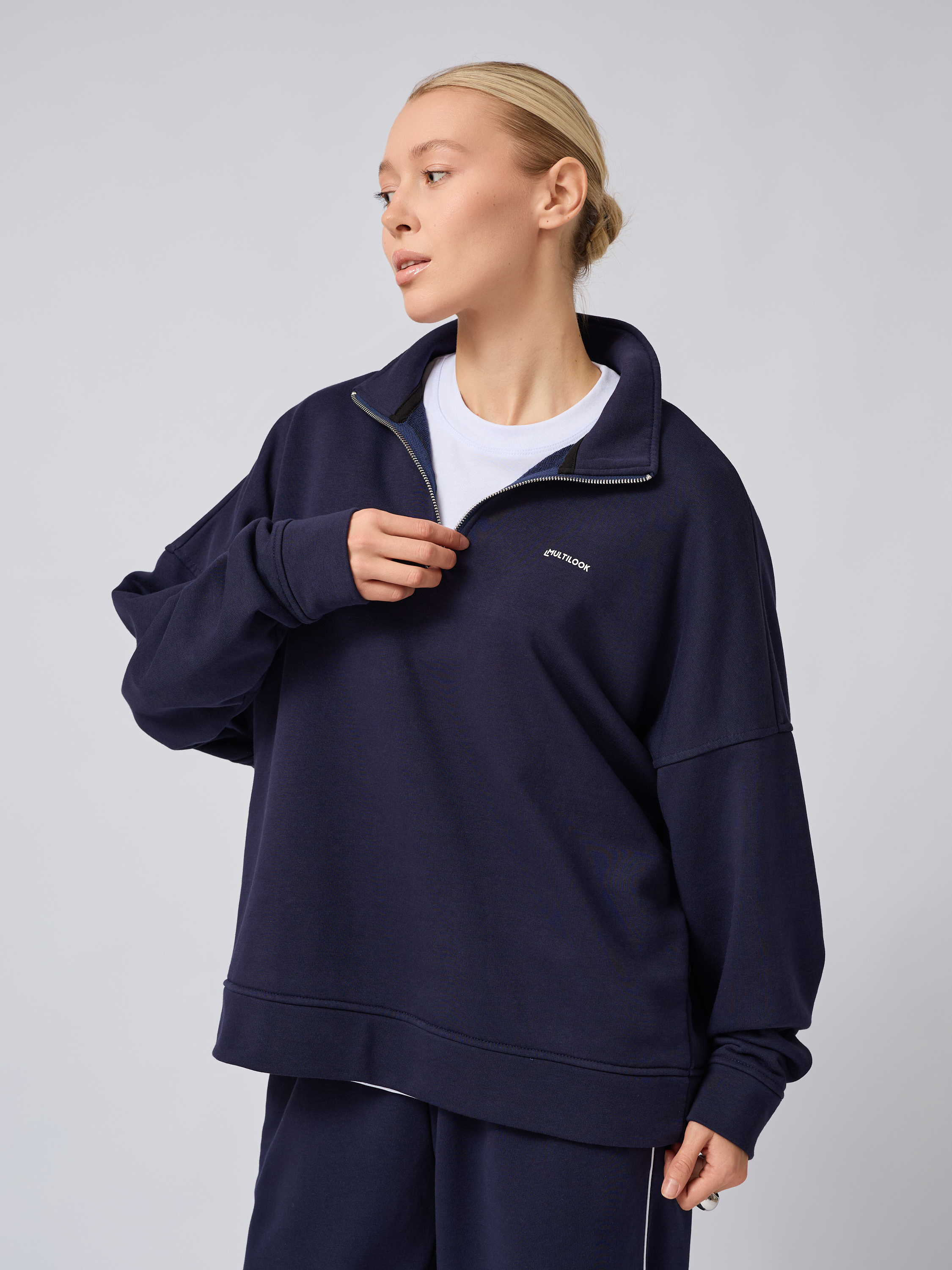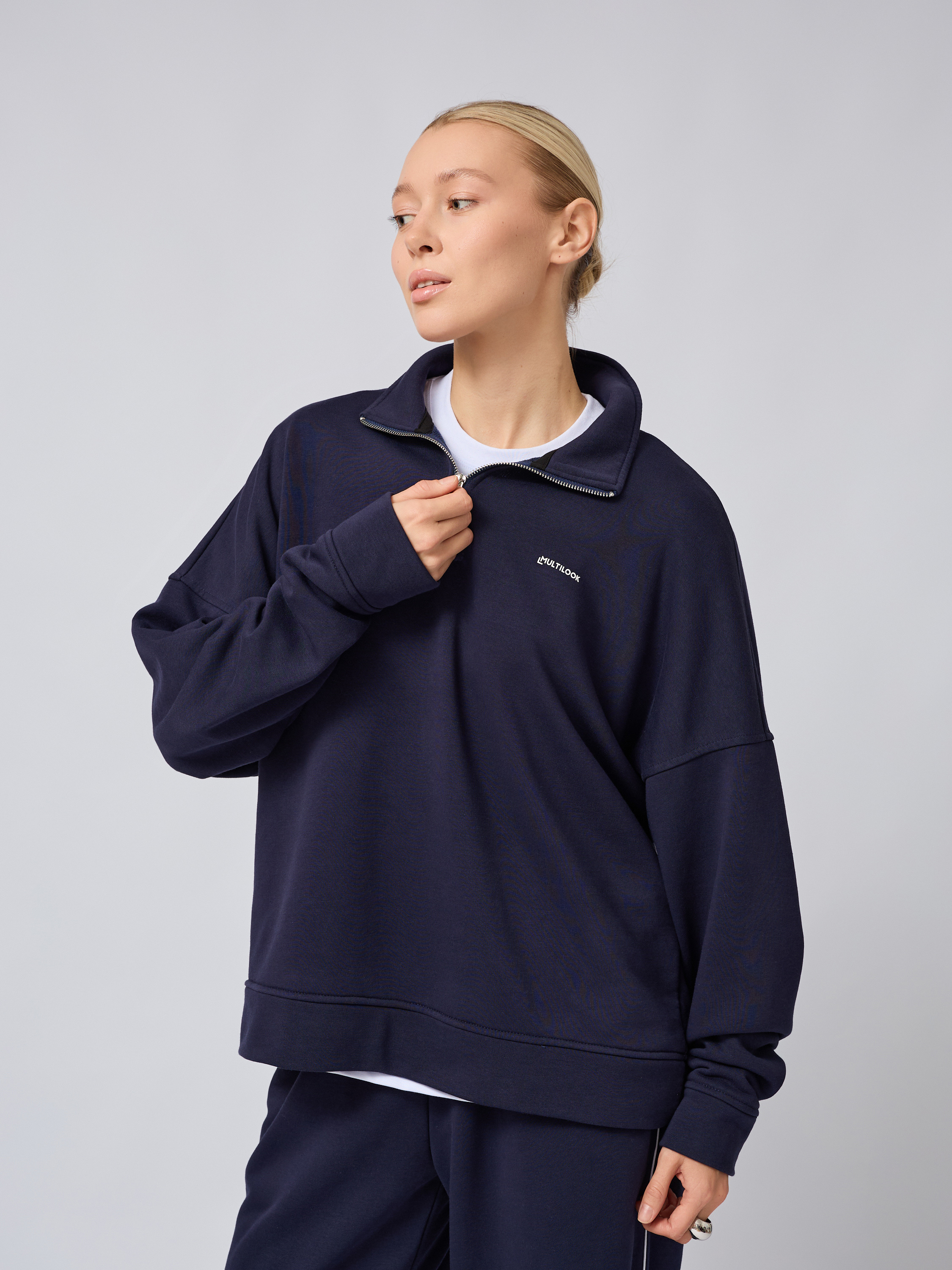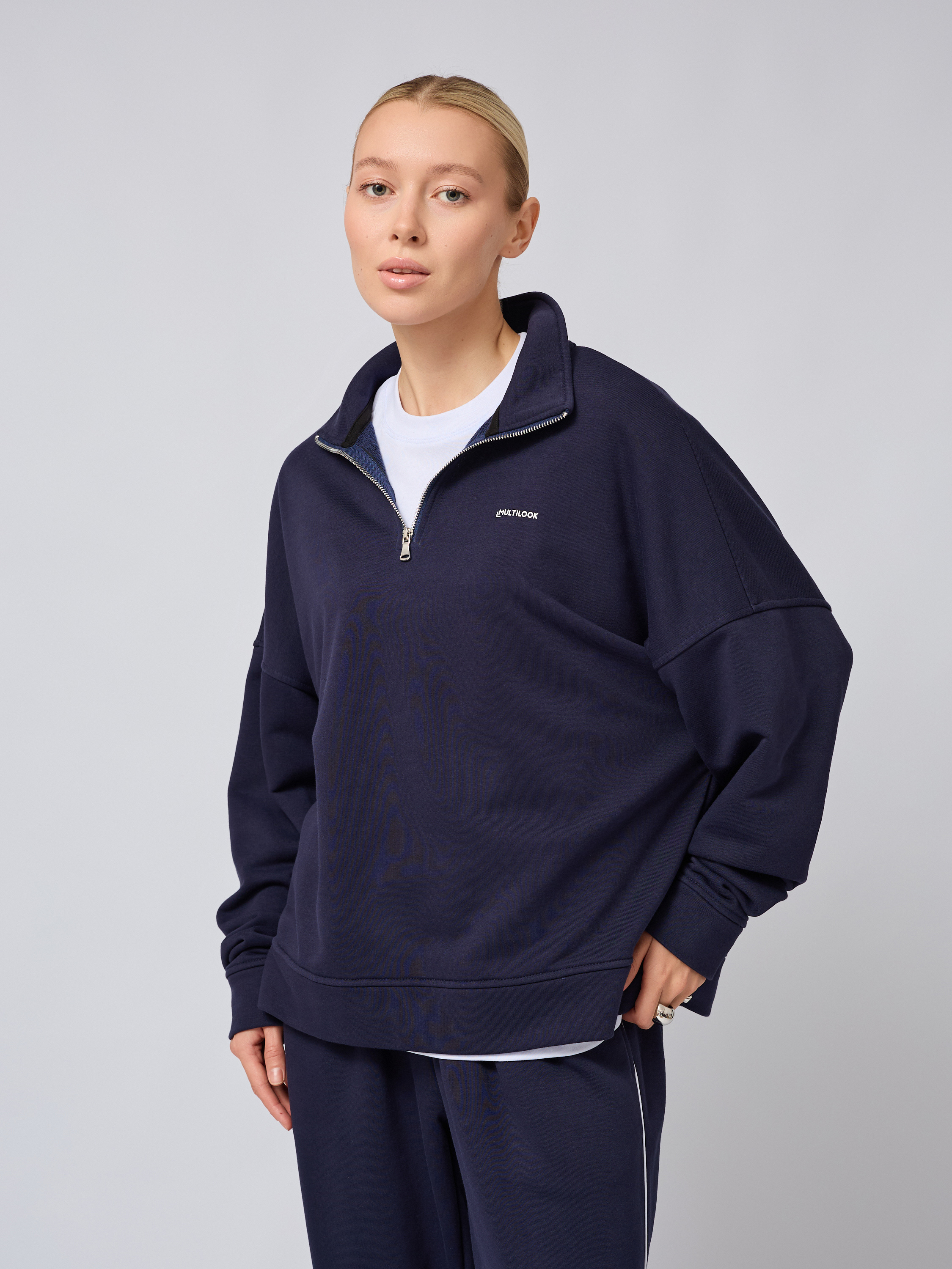 Свободный свитшот оверсайз на молнии с воротником-стойкой полузамком синего цвета — это вещь, которая станет незаменимой в гардеробе поклонников трендовых образов и корейского стиля. Он изготовлен из прочных мягких материалов: сочетание хлопка и полиэстера обеспечивает легкость, тепло и высокую воздухопроницаемость. Плотного футера трехнитки гарантирует защиту от ветра, сохраняя оптимальный тон для комфортного ношения осенью или в прохладную погоду.