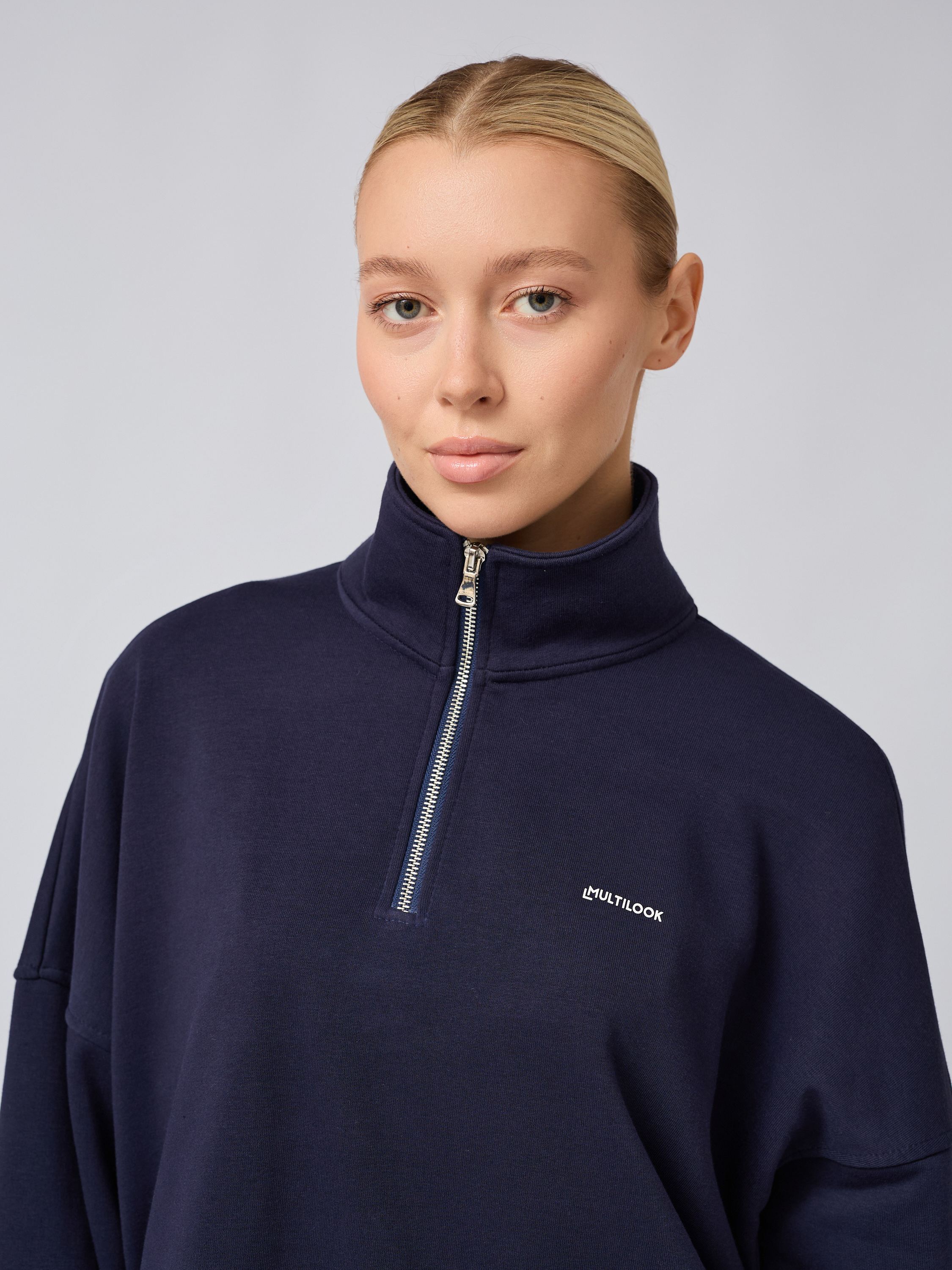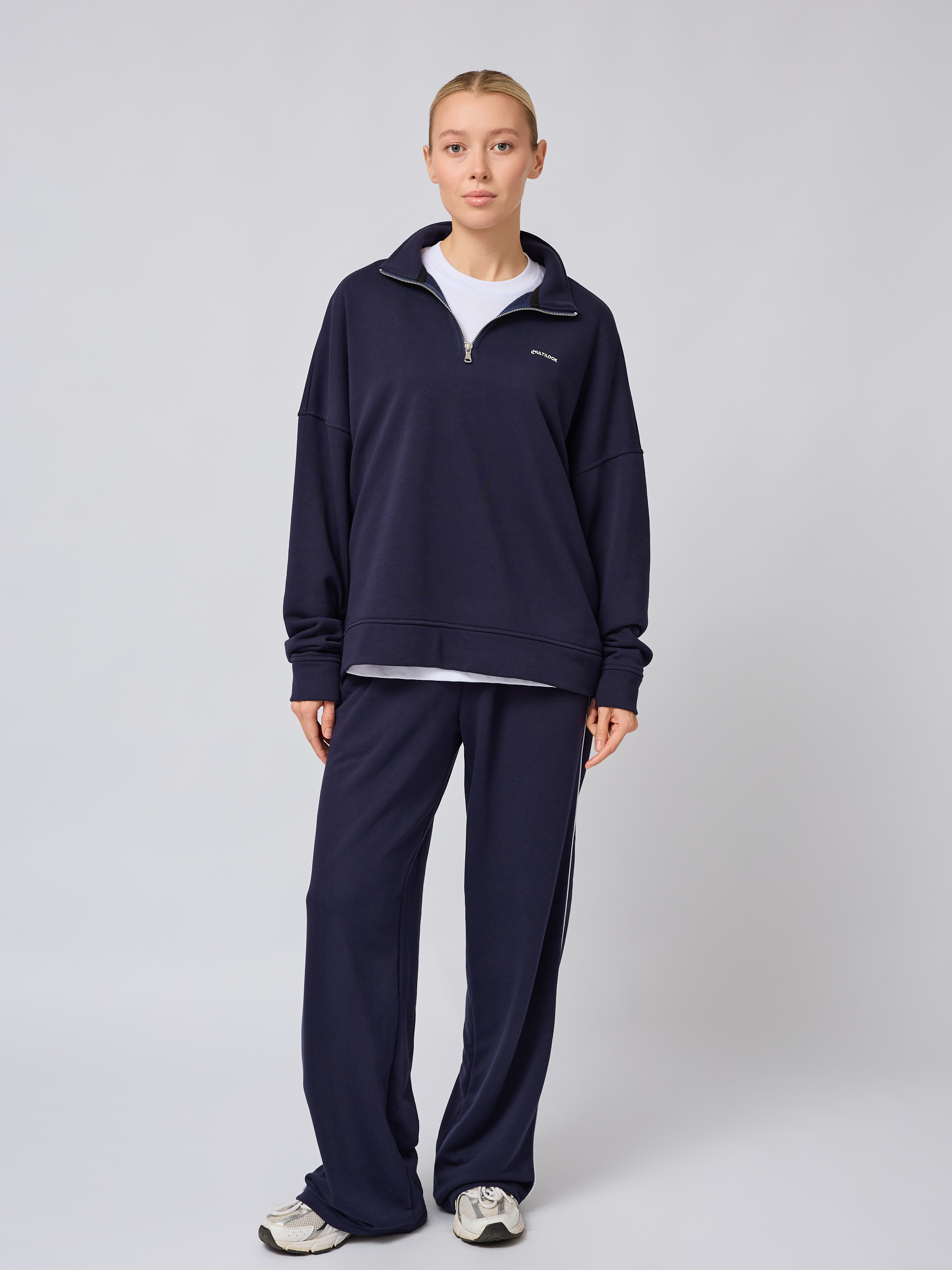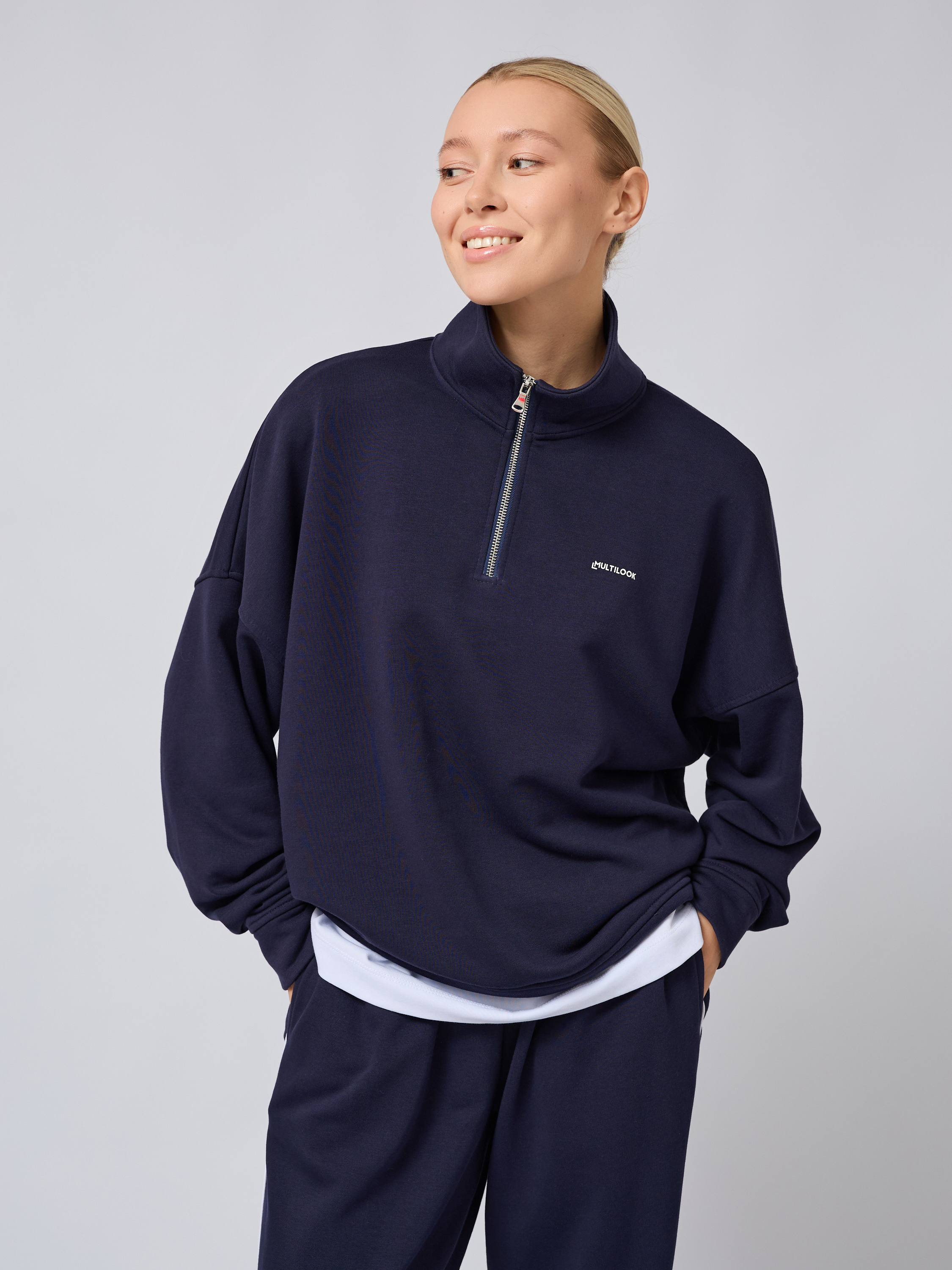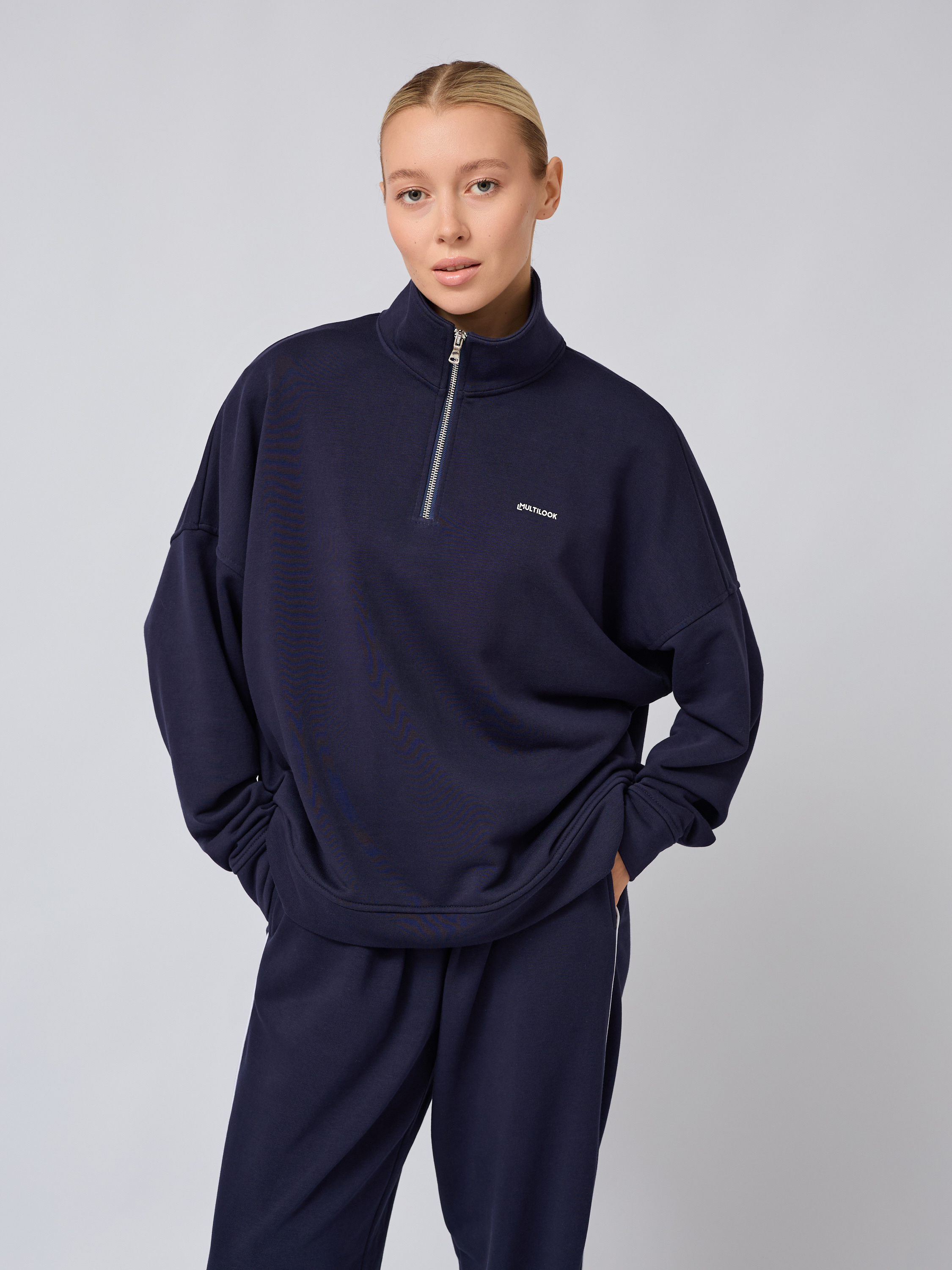 Свободный свитшот оверсайз на молнии с воротником-стойкой полузамком синего цвета — это вещь, которая станет незаменимой в гардеробе поклонников трендовых образов и корейского стиля. Он изготовлен из прочных мягких материалов: сочетание хлопка и полиэстера обеспечивает легкость, тепло и высокую воздухопроницаемость. Плотного футера трехнитки гарантирует защиту от ветра, сохраняя оптимальный тон для комфортного ношения осенью или в прохладную погоду.