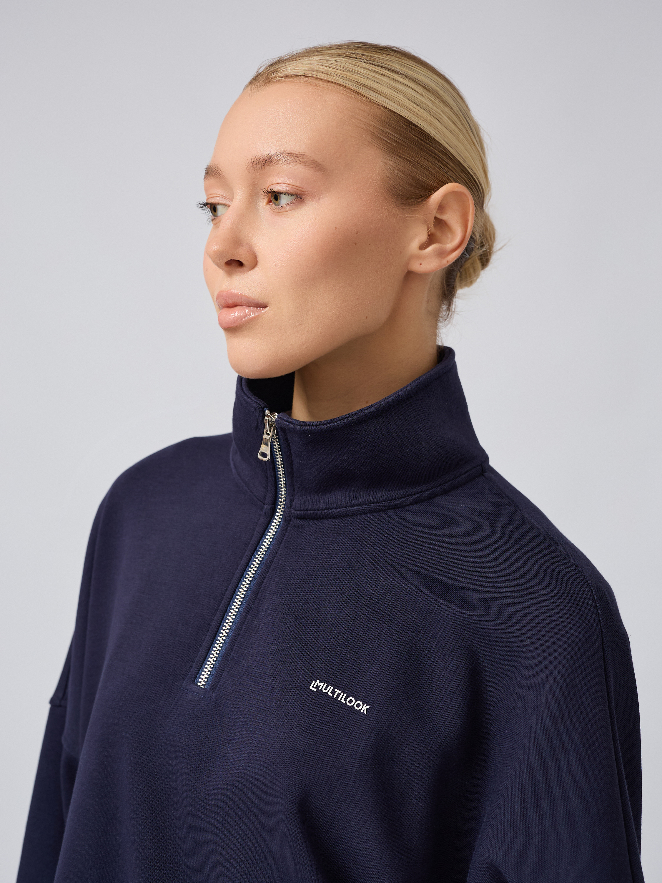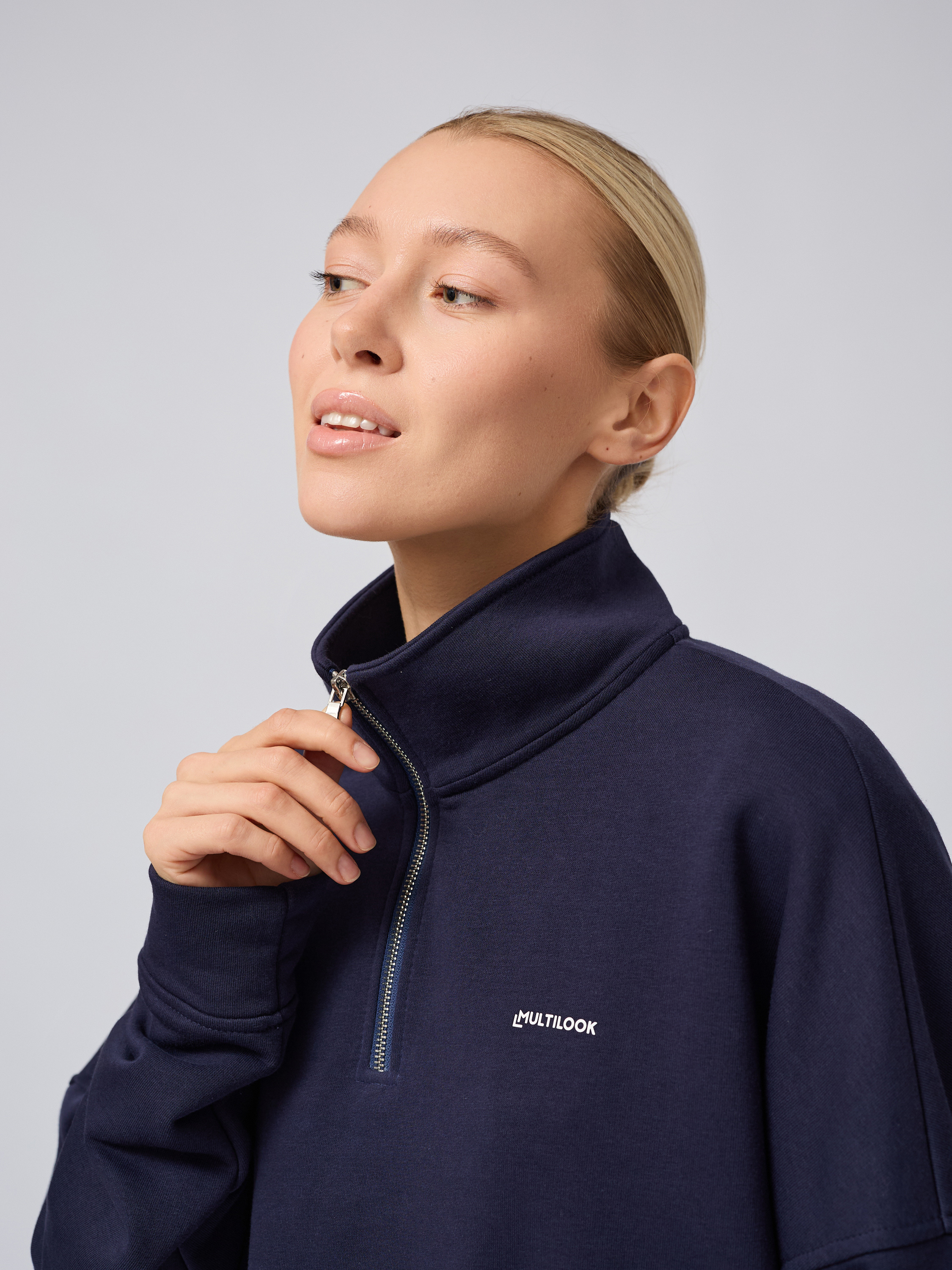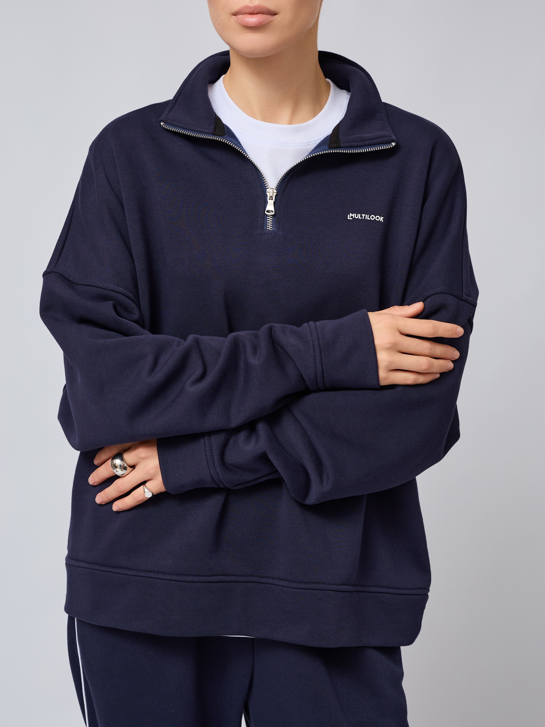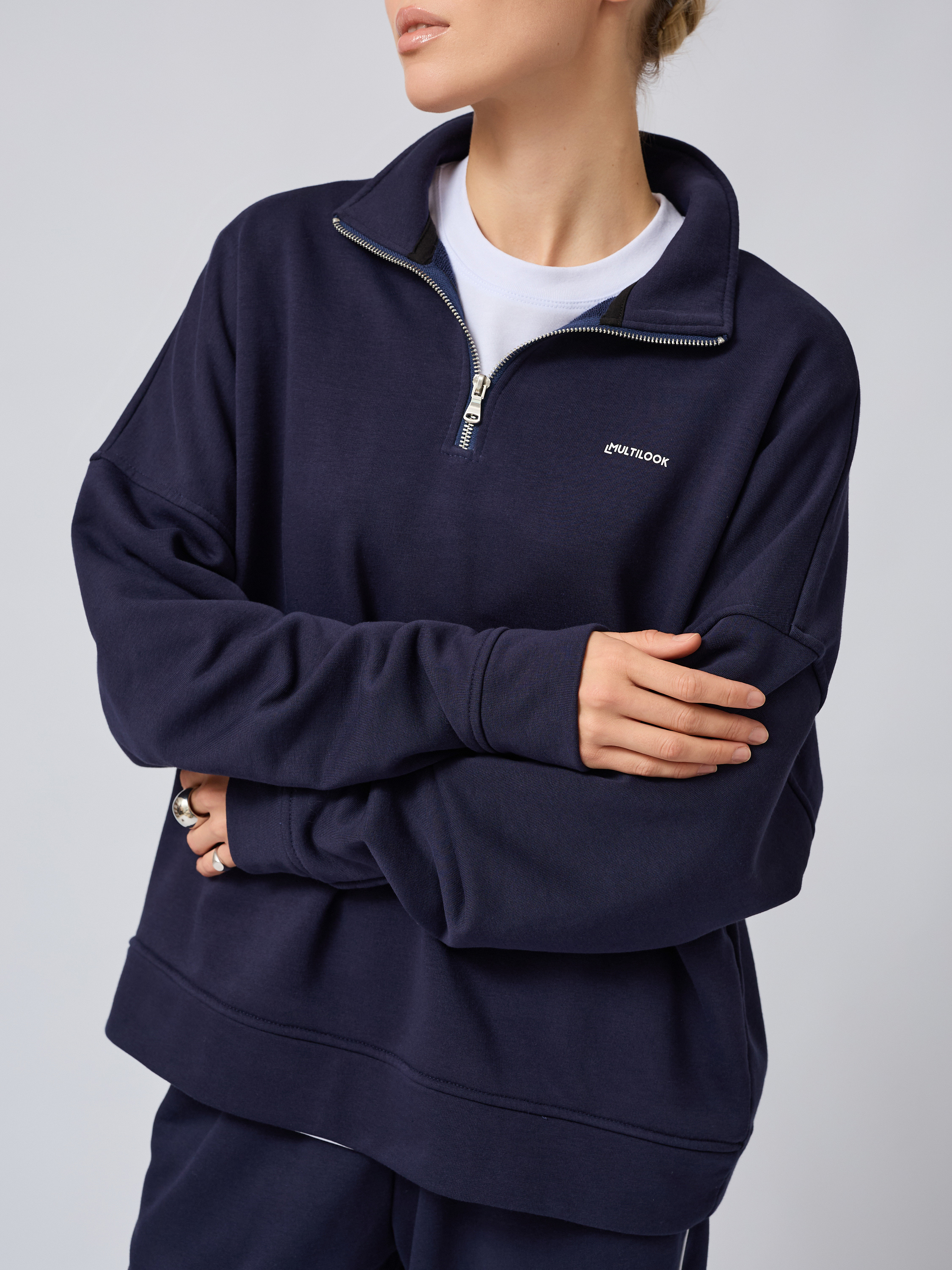 Зип-дизайн с застежкой на молнии полузамок делает этот свитшот максимально универсальным: его можно носить расстегнутом виде поверх футболки либо застегнутом варианте — воротник-стойка защищает горло от холода. Отложным воротником анорак придает изделию особый шарм корейского направления одежды. Свободная посадка не сковывает движения, а объемный кроем дает возможность сочетаться со многими предметами гардероба: брюками, юбками или джинсами.