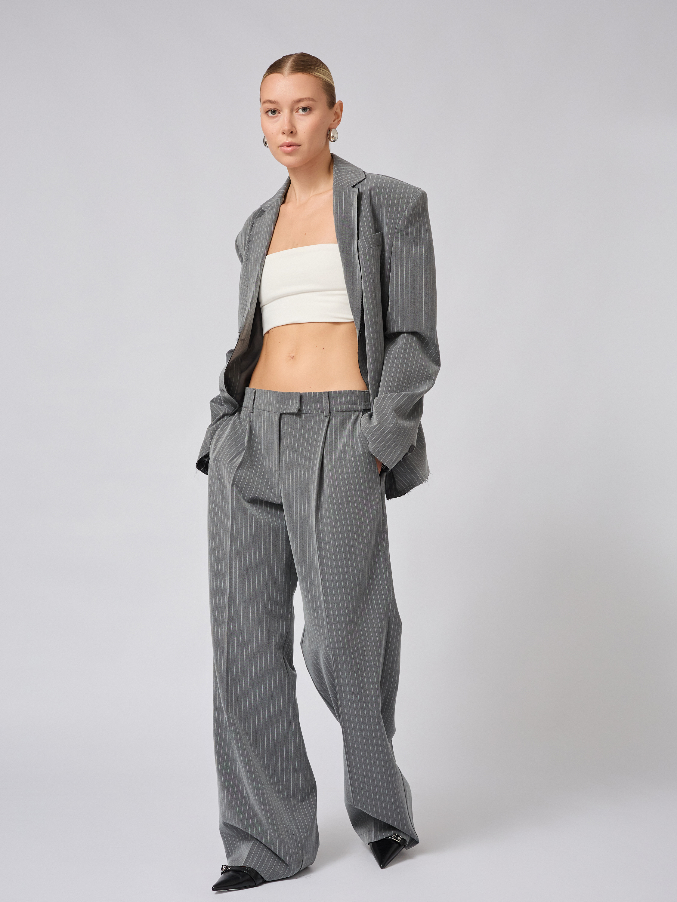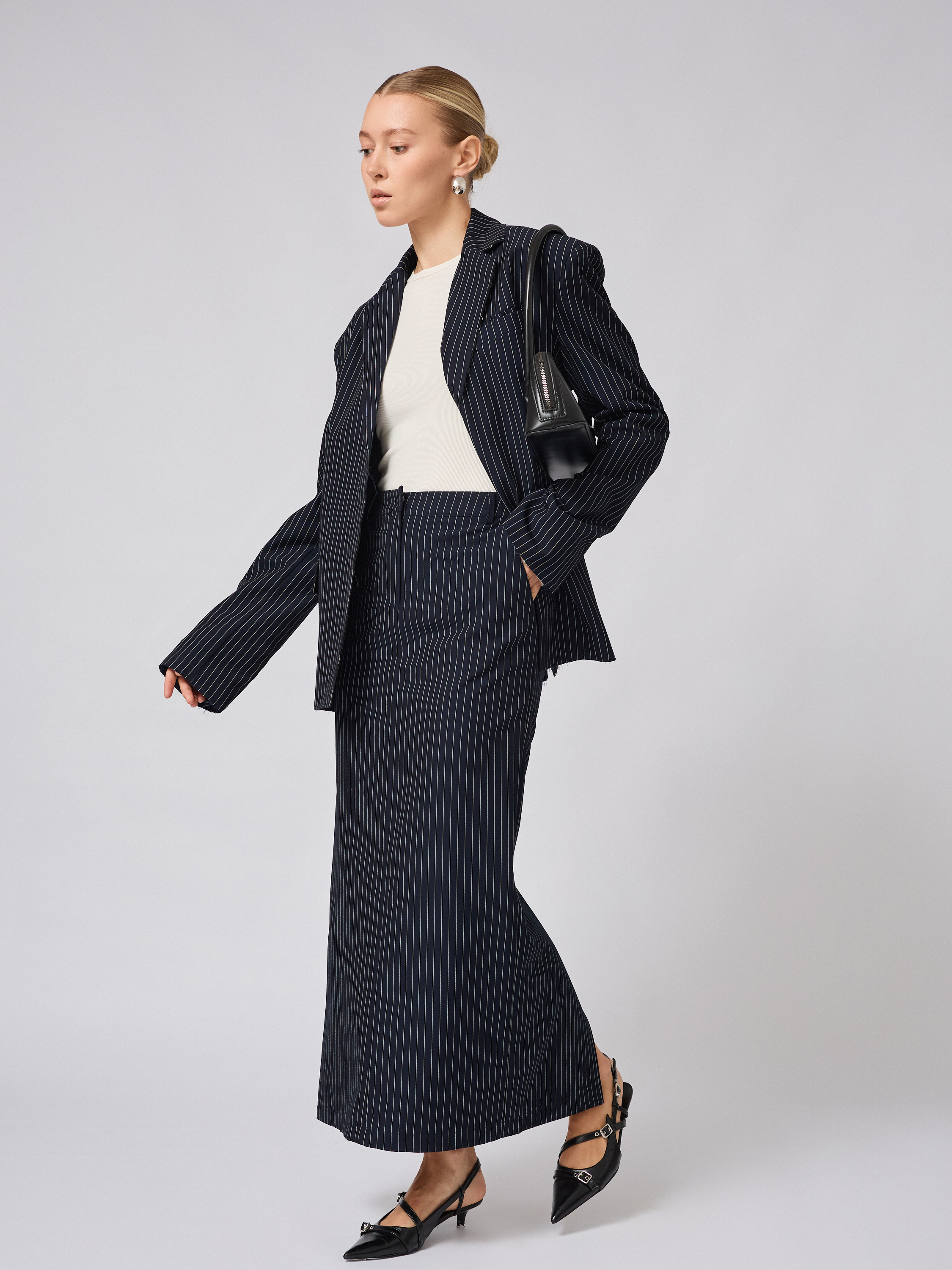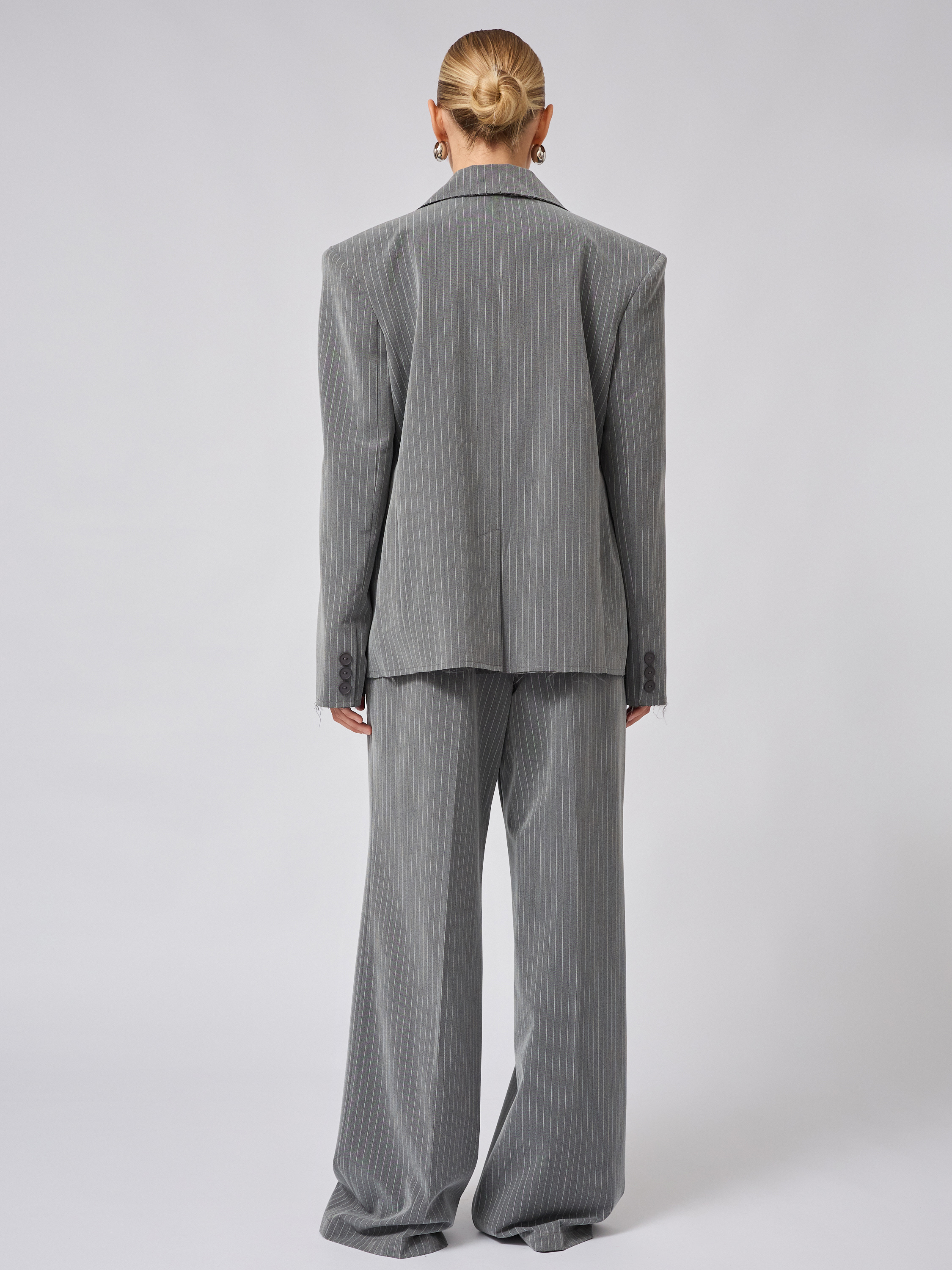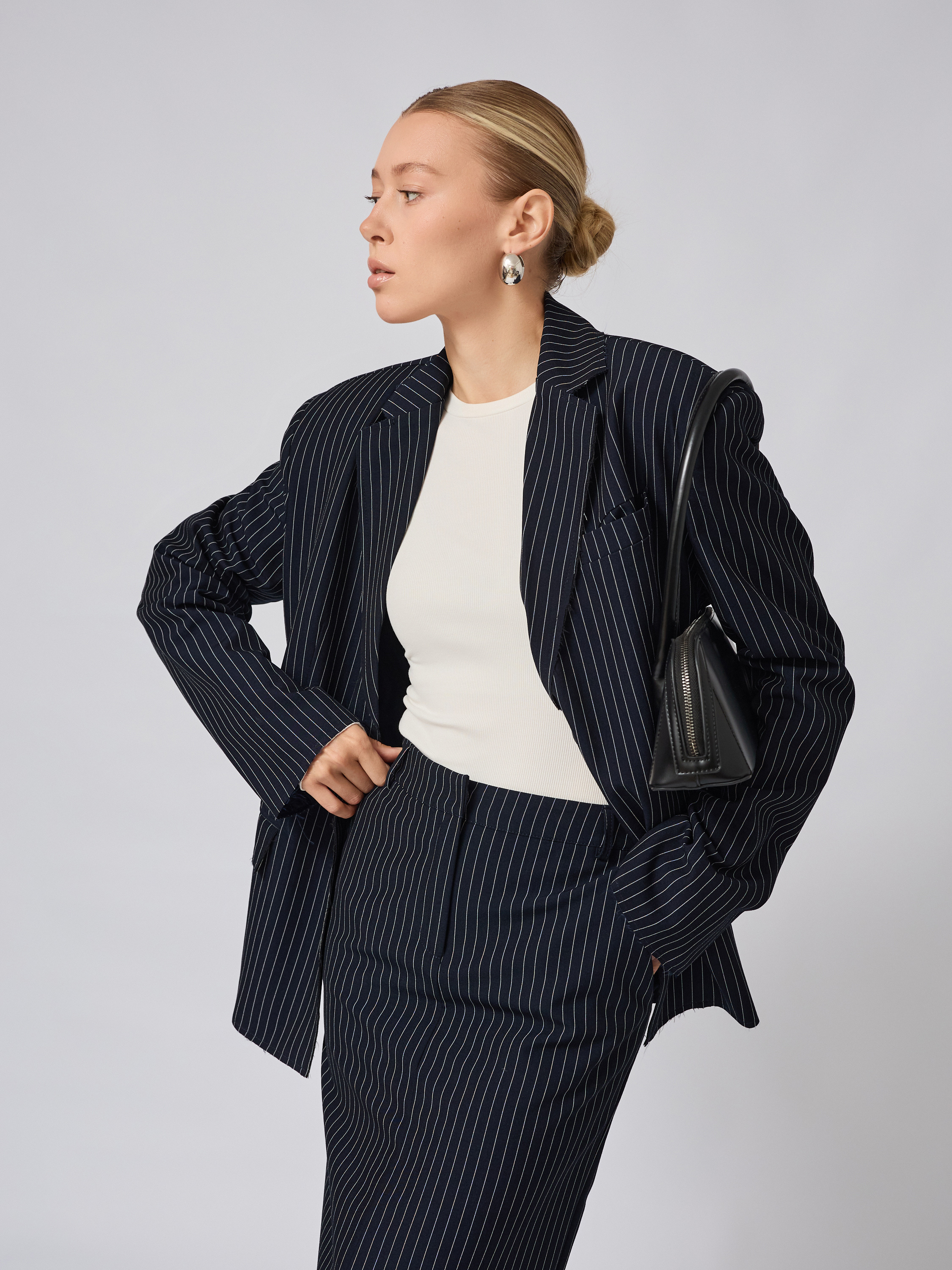 Изделие изготовлено из плотной ткани с подкладкой, что делает жакет универсальным для осеннего, весеннего и даже зимнего сезонов. Необработанный низ добавляет оригинальности и характерности образу, выделяя его среди однообразных вариантов деловой одежды. Свободный крой прекрасно сочетается с разными предметами гардероба, создавая возможность комбинировать этот пиджак как с классическим низом, так и с более смелыми элементами повседневного или торжественного наряда.