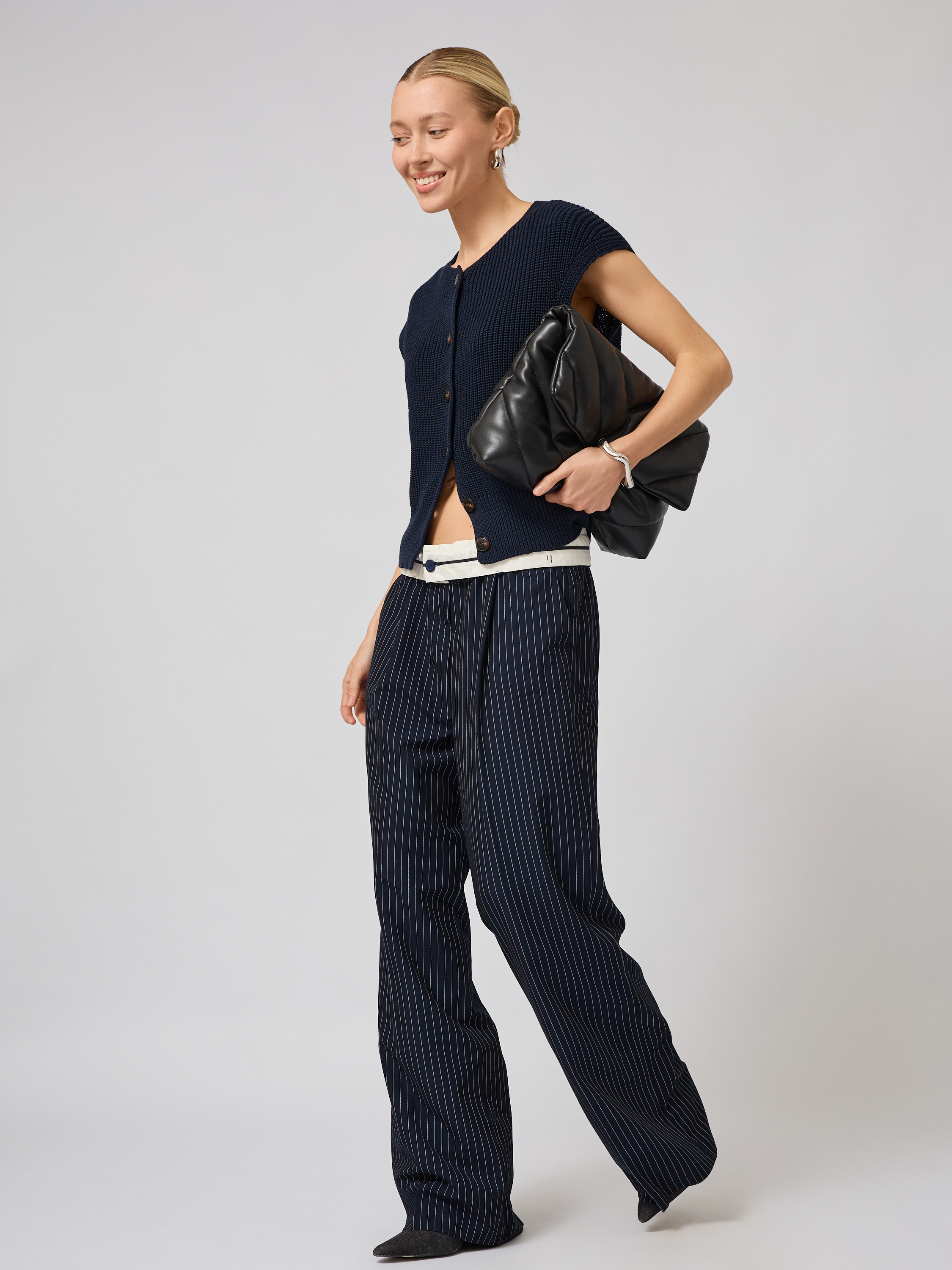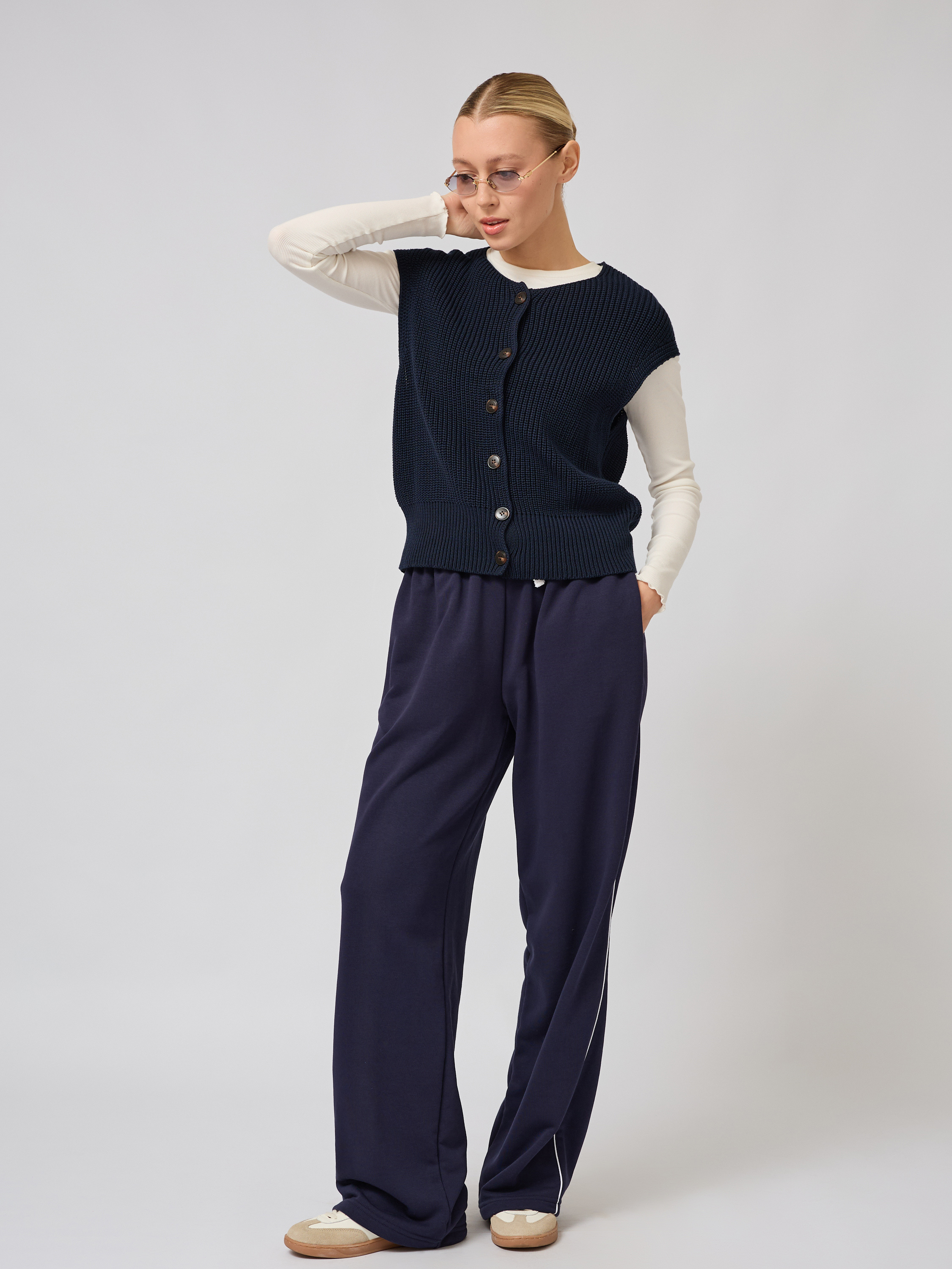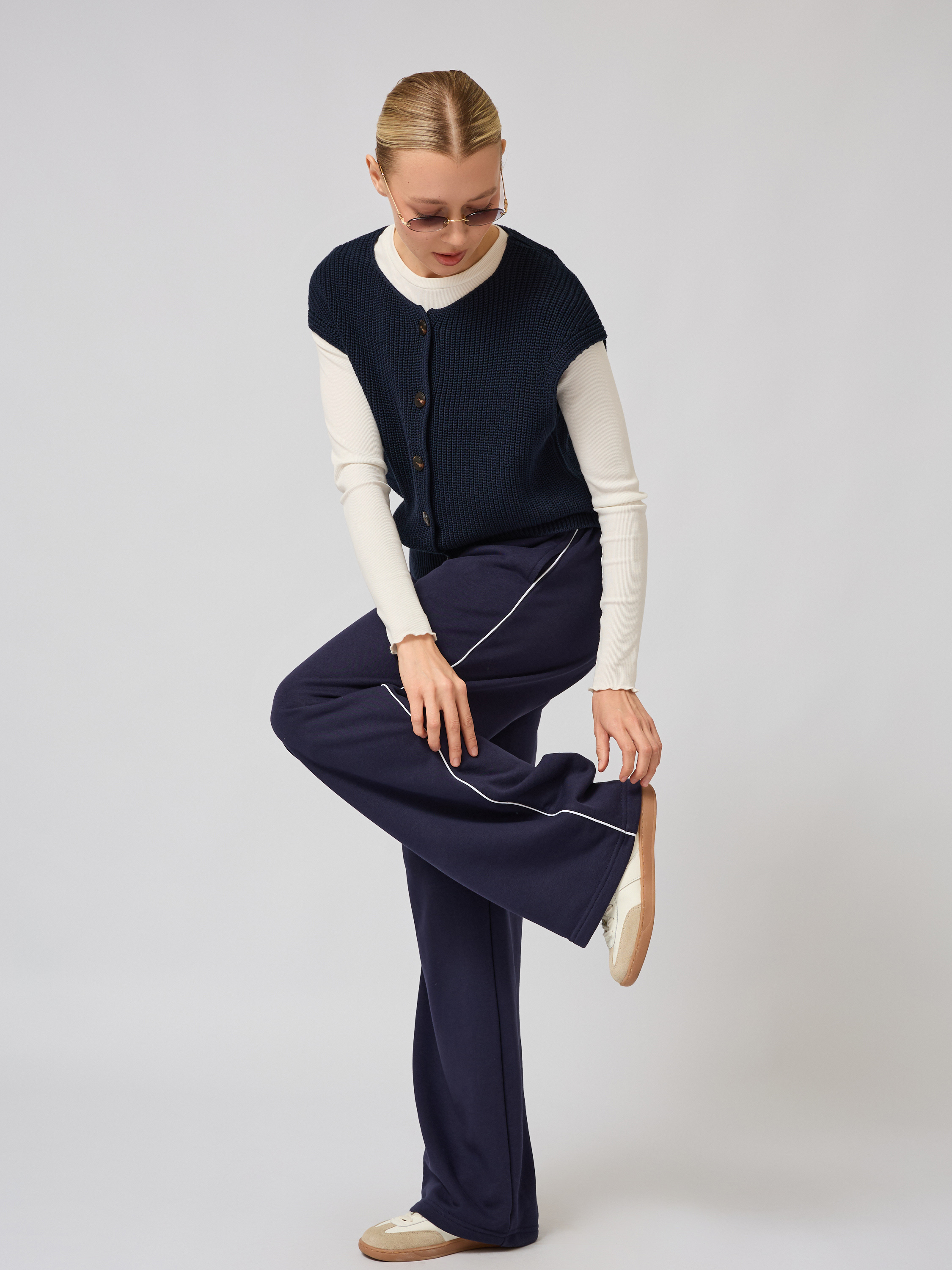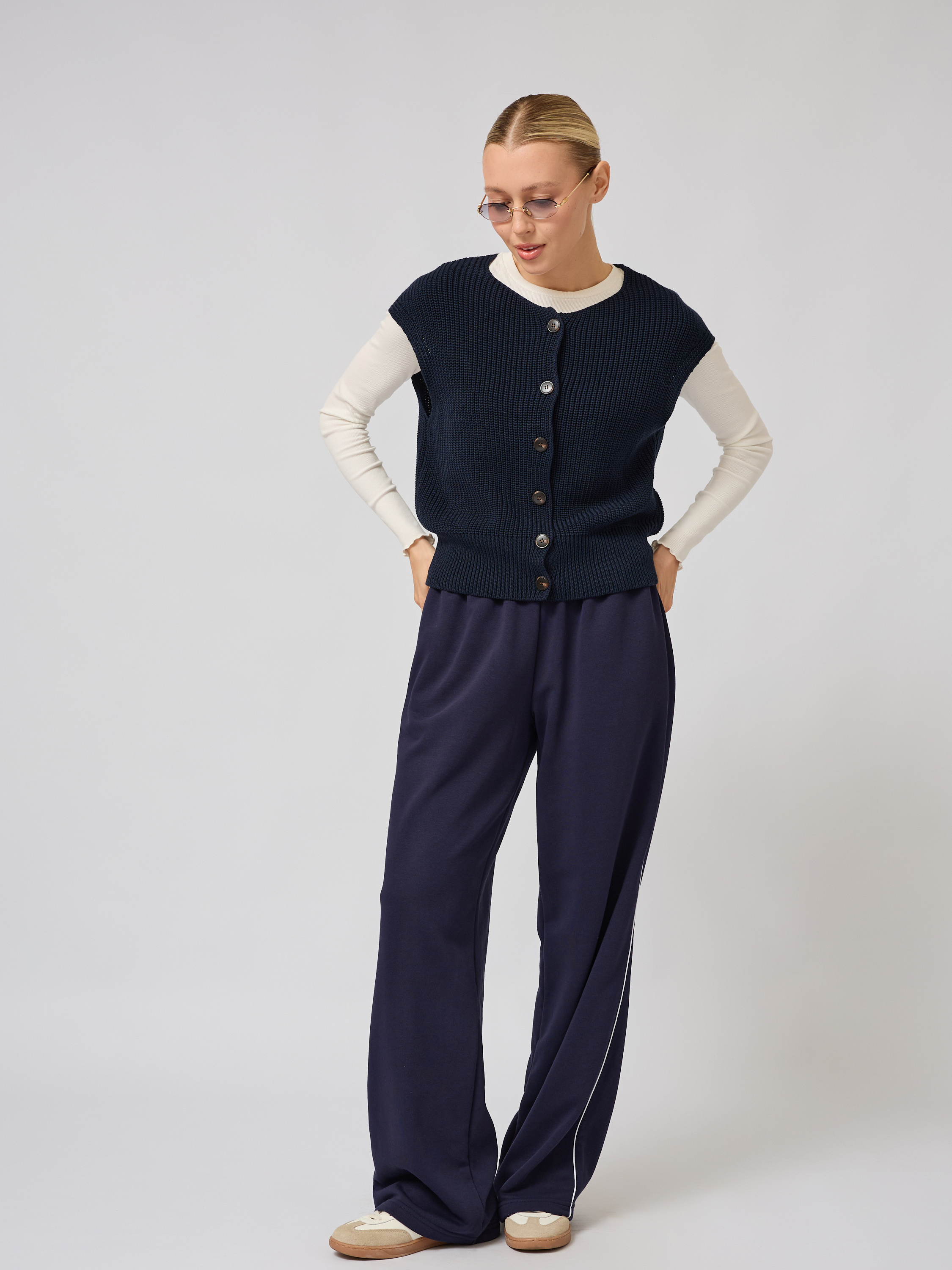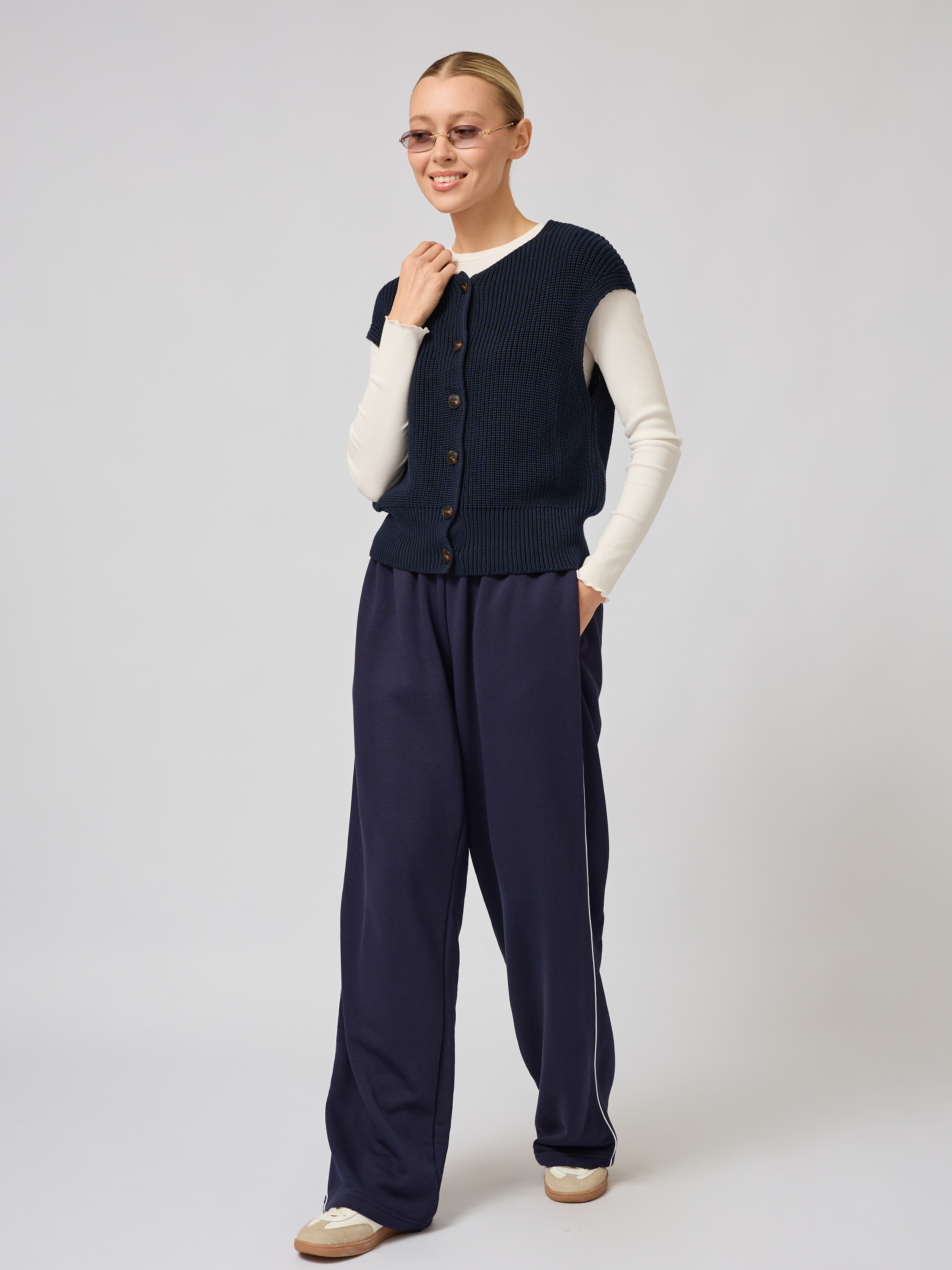 Стильный женский жилет вязаный на пуговицах — это тот элемент гардероба, который не стоит упускать при выборе вещей для прохладных дней. Этот жилет выполнен из высококачественных материалов, где основа — хлопка и акрила, что делает его отличным выбором для женщин, ценящих комфорт, универсальность и стиль. Молочный цвет придает особую элегантность и гладкость образу, позволяя вписываться как в офисный дресс-код, так и в повседневные наряды. Благодаря своей простотой и уникальным особенностям дизайна с круглым вырезом и прямым силуэтом, этот трикотажный жилет отличается безупречным исполнением. Жилетка превосходно держит форму за счет плотного трикотажа высокого качества. Хлопковая пряжа в составе позволяет изделию дышит при носке, а акрил добавляет мягкости и прочности. Вязаного рисунка нет — здесь ставка сделана на лаконичность линий и минимализм стиля. Не колется благодаря качественной обработке трикотажа: носите ее поверх водолазки или лонгслива — никакой лишней заботы о дискомфорте! Такой вариант согреет вас осенне-весенняя прохлада или холодные дни любого времени года. Этот удлиненный жилет свободного кроя подходит для женщин разных ростовки и легко адаптируется под особенности вашей фигуры за счет оверсайз силуэта. Он является универсальной основой коллекцию модных образов: сочетайте с базовый вещами или комбинируйте с различными элементами одежды для создания стильных нарядов любого назначения. Простой дизайн без декоративных элементов отлично впишется как в классические офисные стили, так и в более расслабленные повседневного направления. Не упустите возможность пополнить свой гардероб этим стильным вариантом: молочный оттенок прекрасно сочетается практически с любым цветом одежды; вырез круглый делает жилет идеальным дополнением к лонгсливам или водолазкам; застежка на пуговицах облегчает надевание при необходимости создать дополнительный слой тепла поверх рубашки либо футболки.